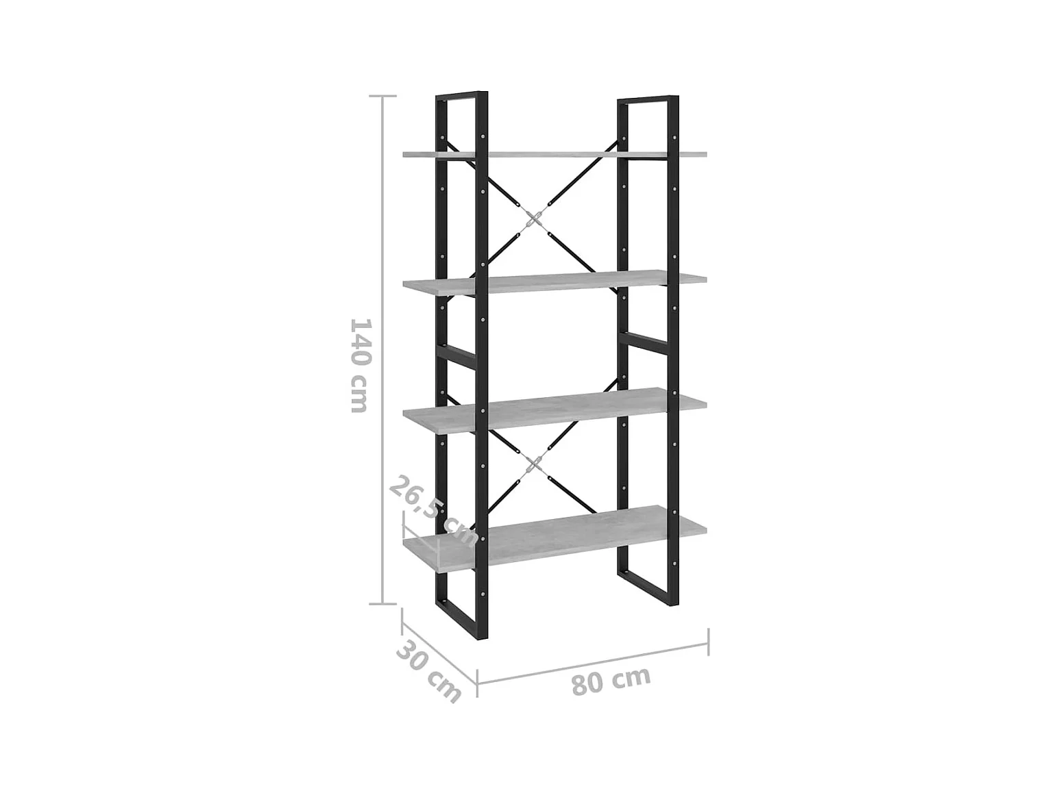 Bibliothèque à 4 niveaux gris béton 80x30x140cm bois ingénierie