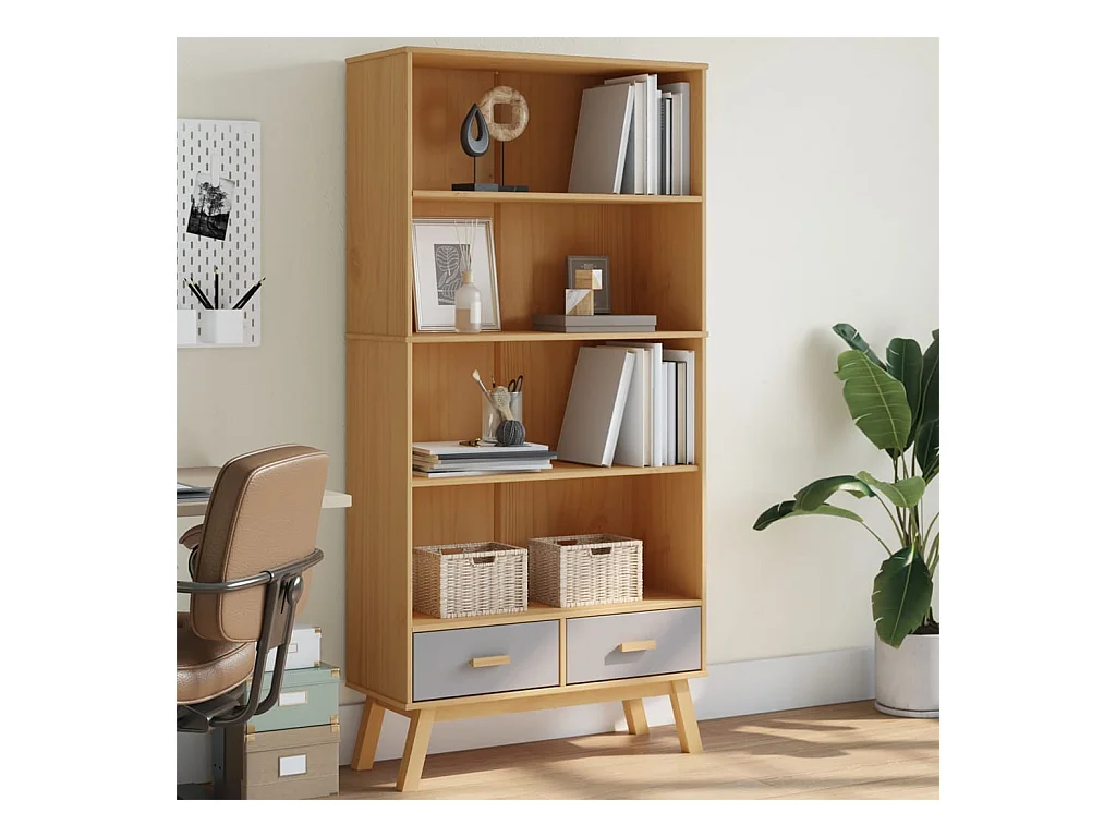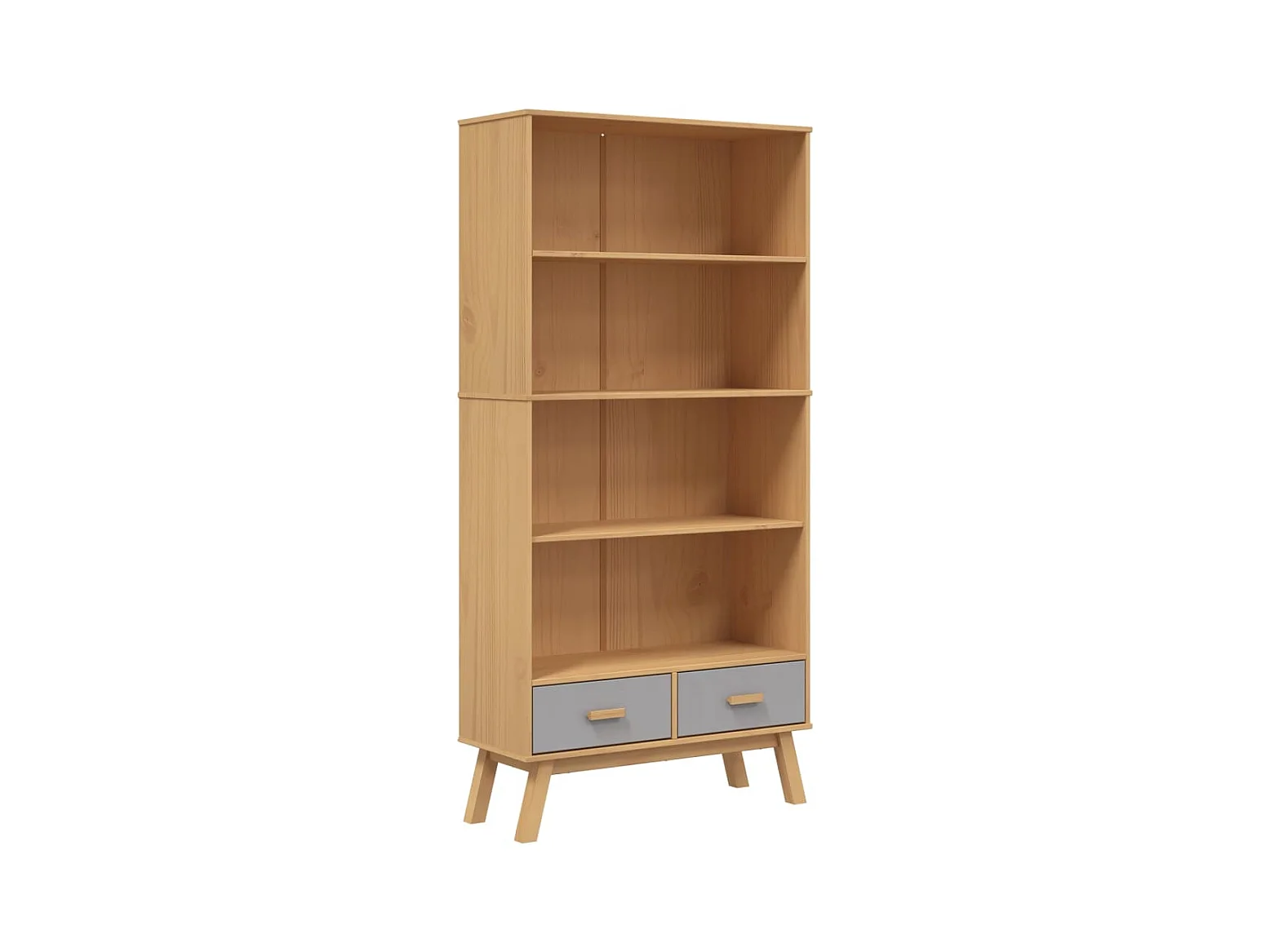 Bibliothèque à 4 niveaux OLDEN gris marron bois de pin massif