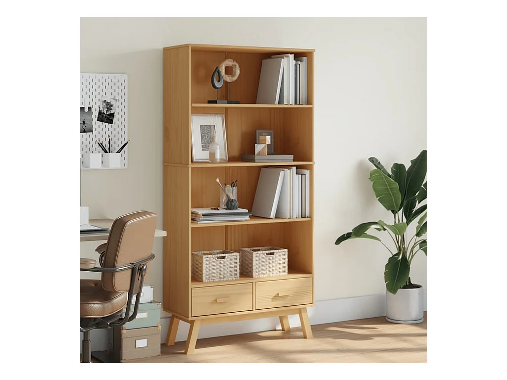 Bibliothèque à 4 niveaux OLDEN marron bois de pin massif FR41833