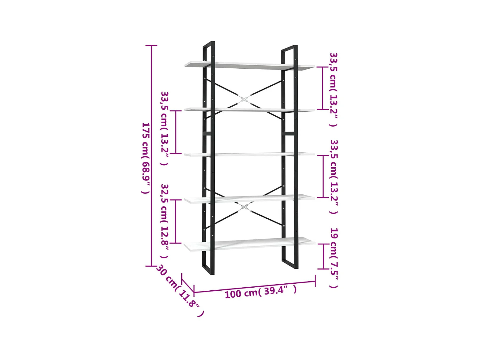 Bibliothèque à 5 niveaux Blanc 100x30x175 cm Bois d'ingénierie