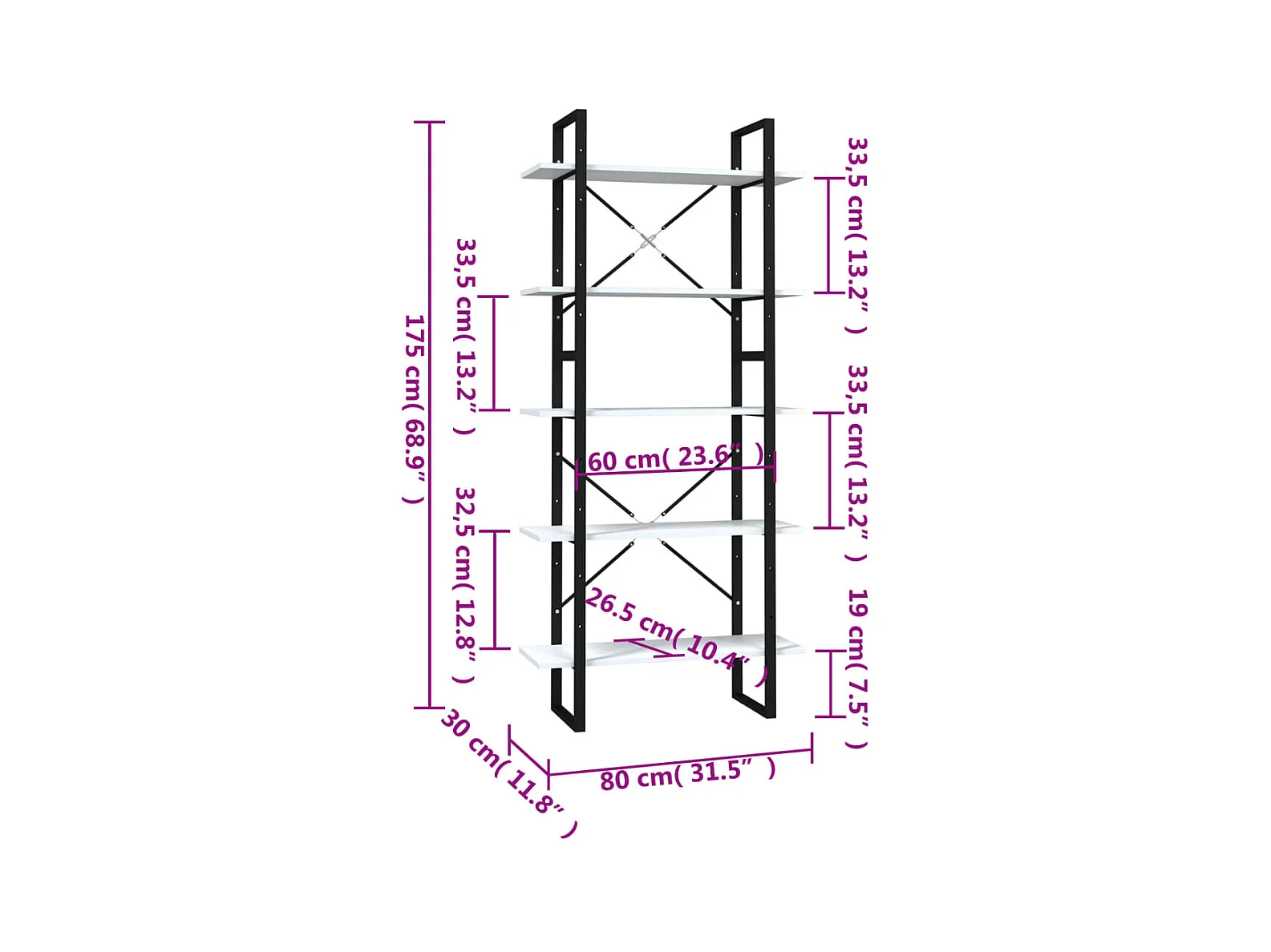 Bibliothèque à 5 niveaux Blanc 80x30x175 cm Bois d'ingénierie