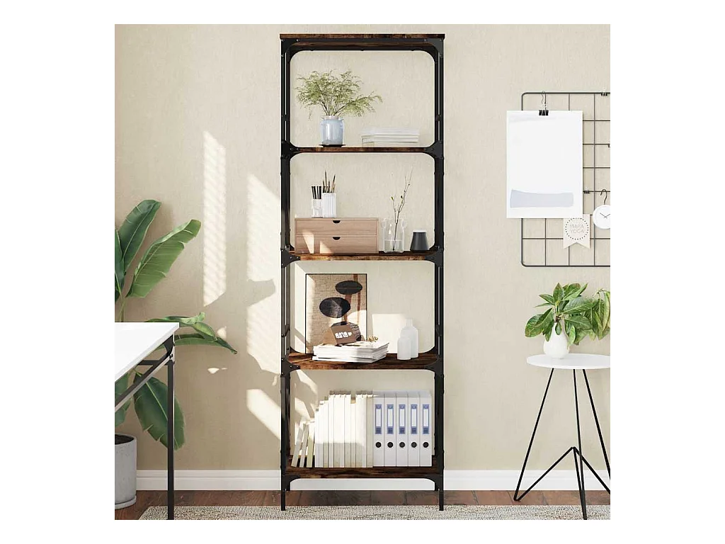 Bibliothèque chêne fumé 91x36x176 cm bois ingénierie et acier