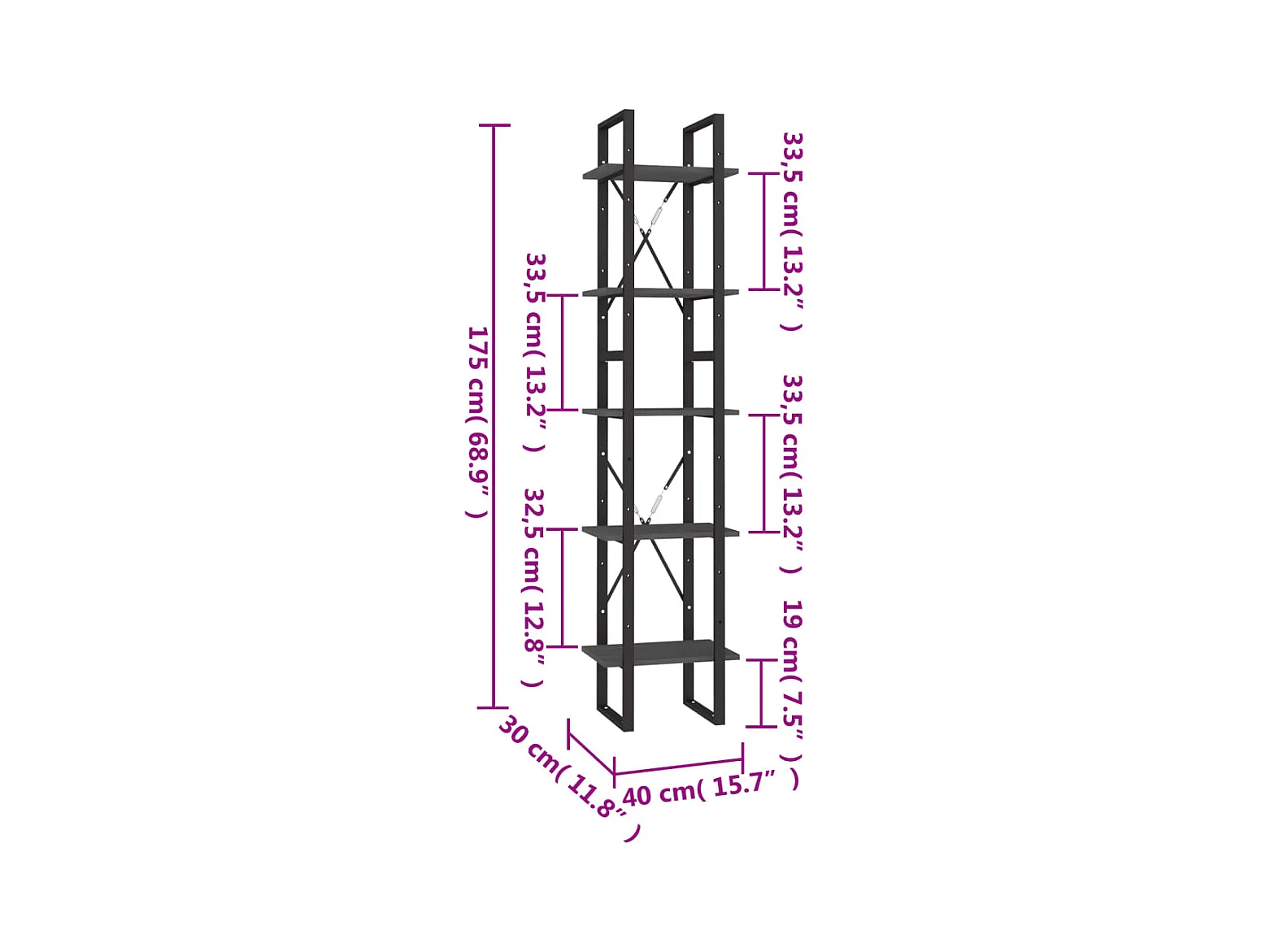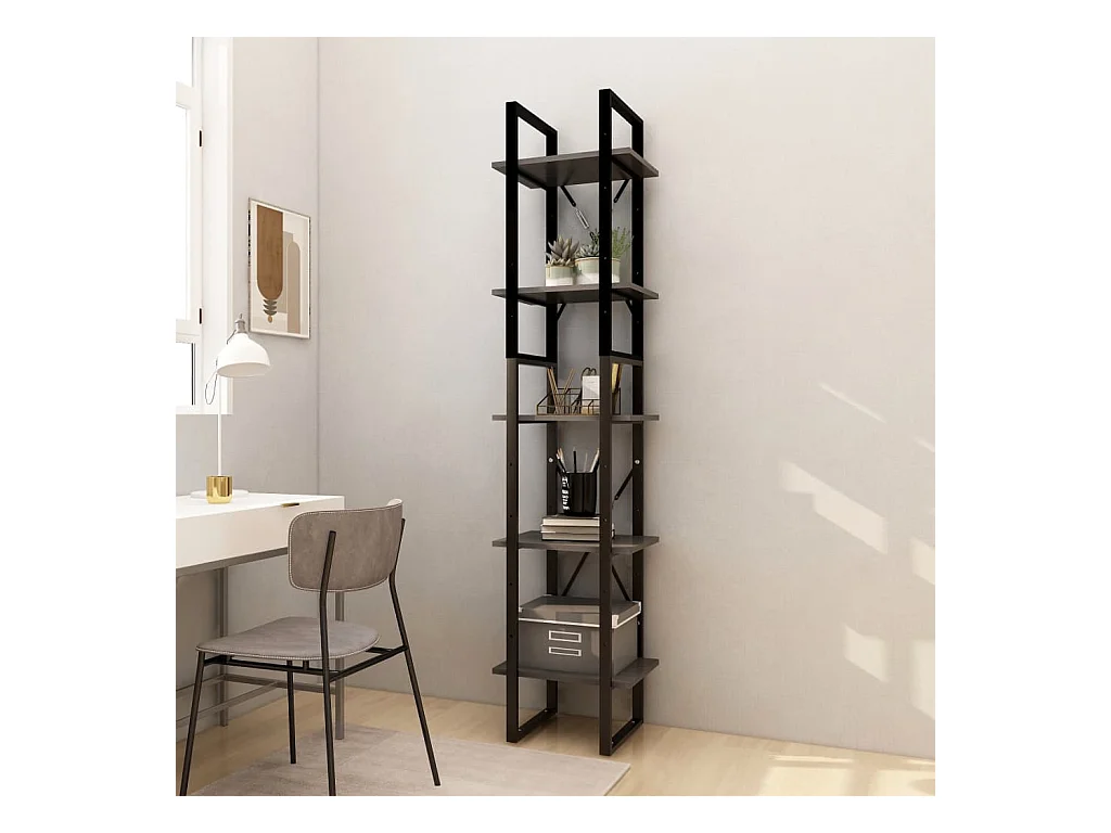 Bibliothèque à 5 niveaux Gris 40x30x175 cm Bois ingénierie