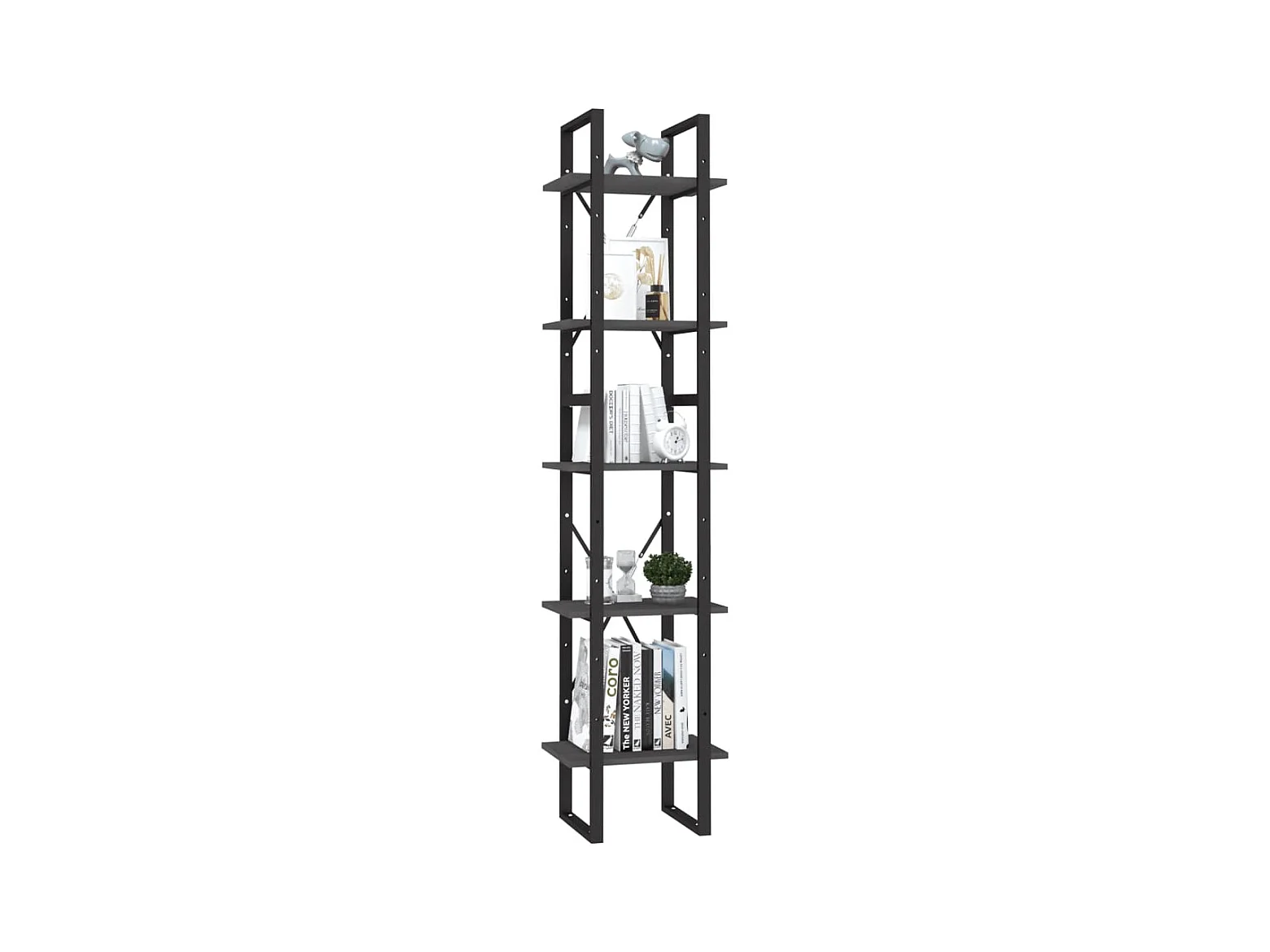 Bibliothèque à 5 niveaux Gris 40x30x175 cm Bois de pin