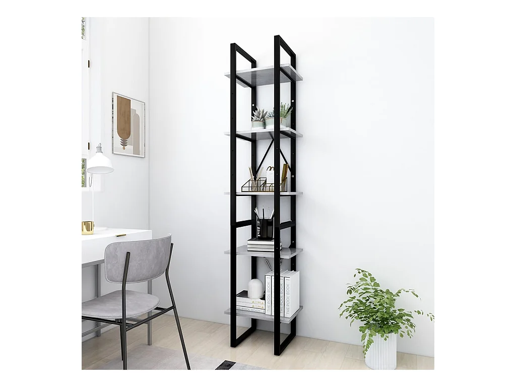 Bibliothèque à 5 niveaux Gris béton 40x30x175cm Bois ingénierie