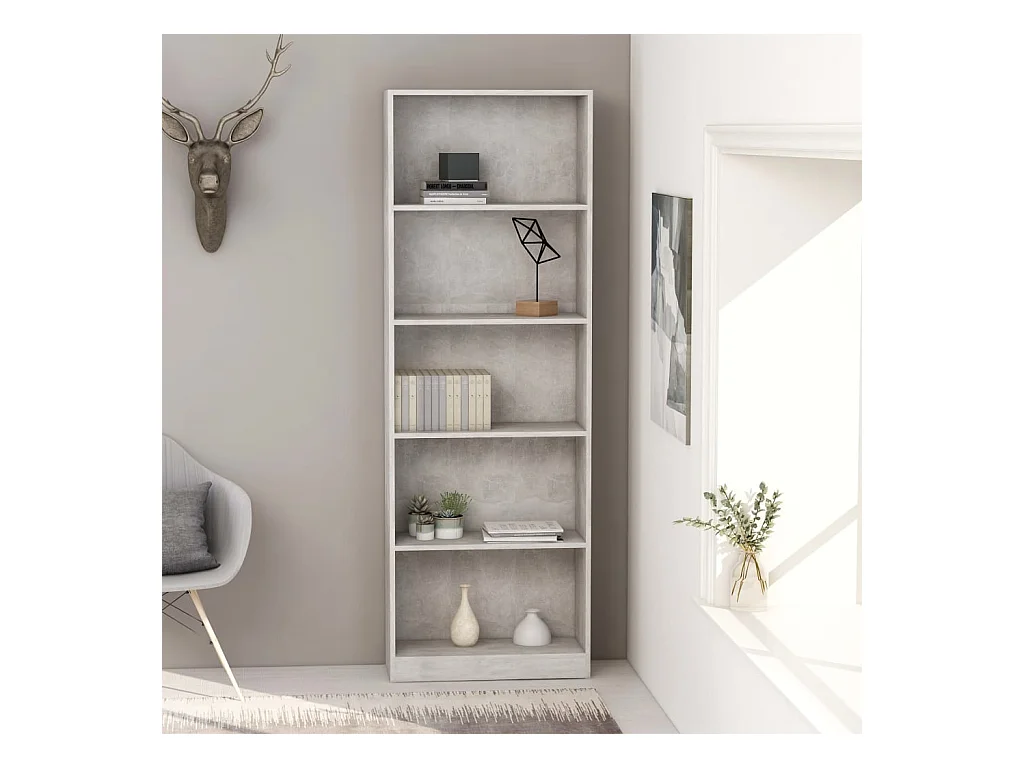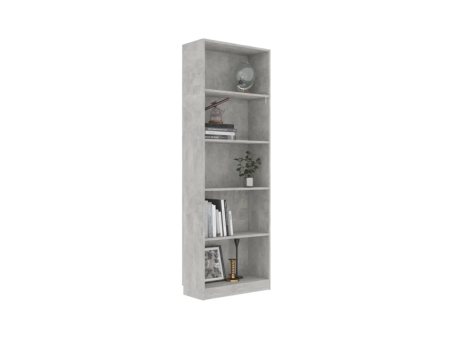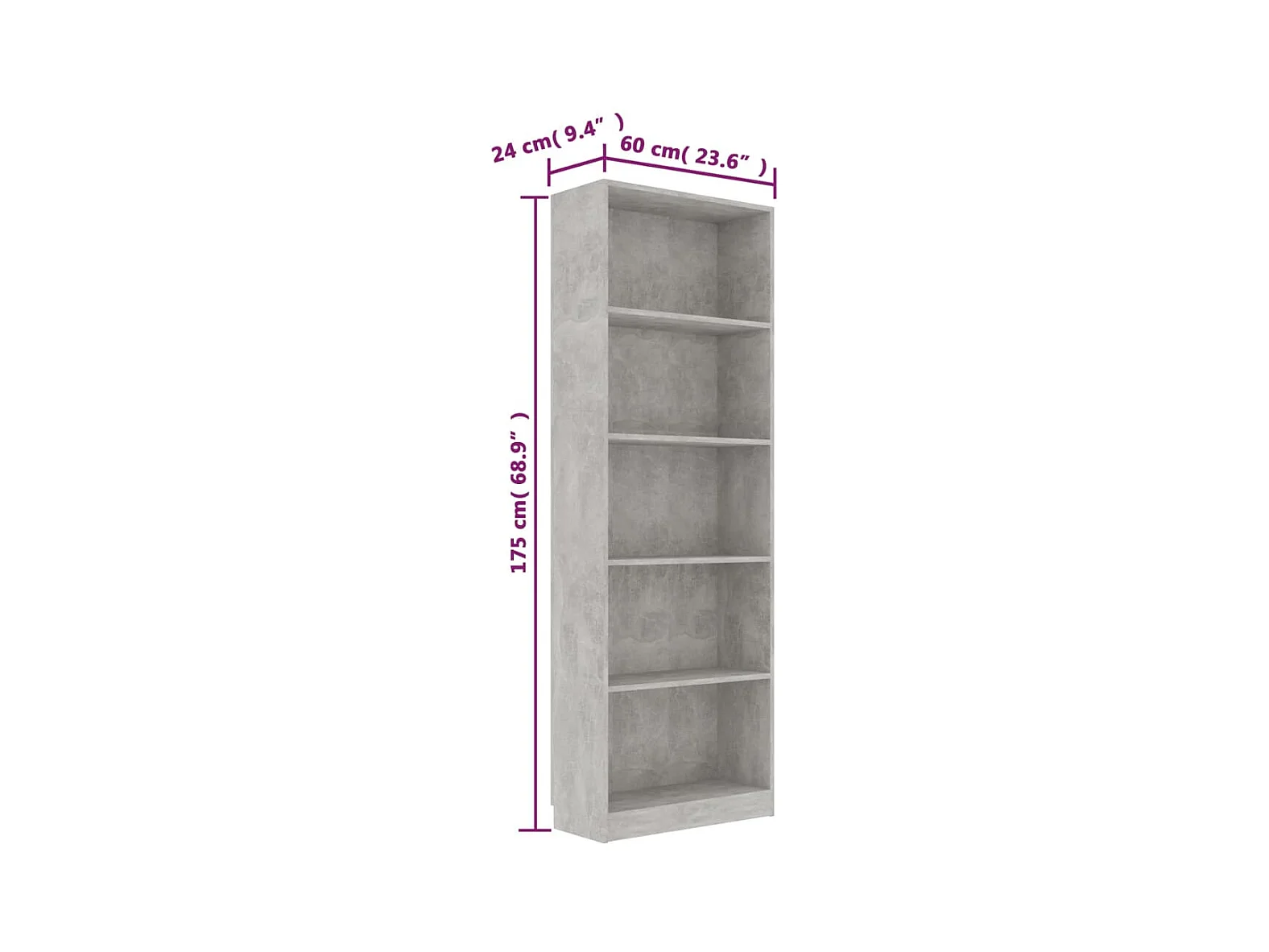 Bibliothèque à 5 niveaux Gris béton 60x24x175cm Bois ingénierie