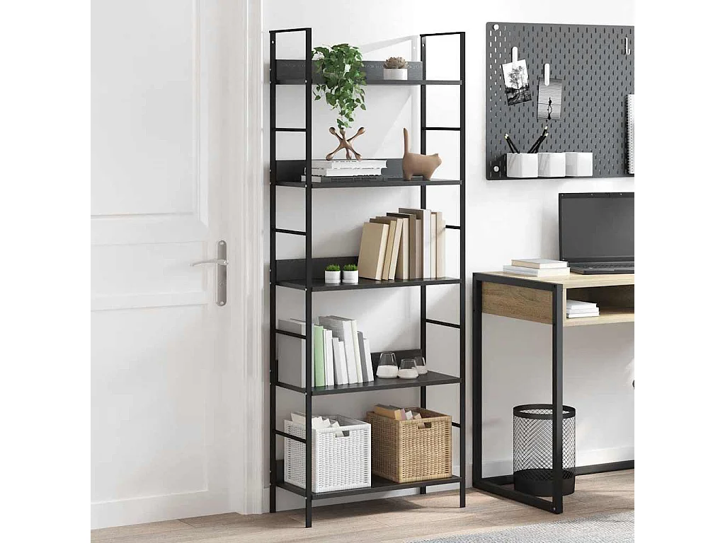 Bibliothèque à 5 niveaux noir 60x27,6x158,5cm bois d'ingénierie