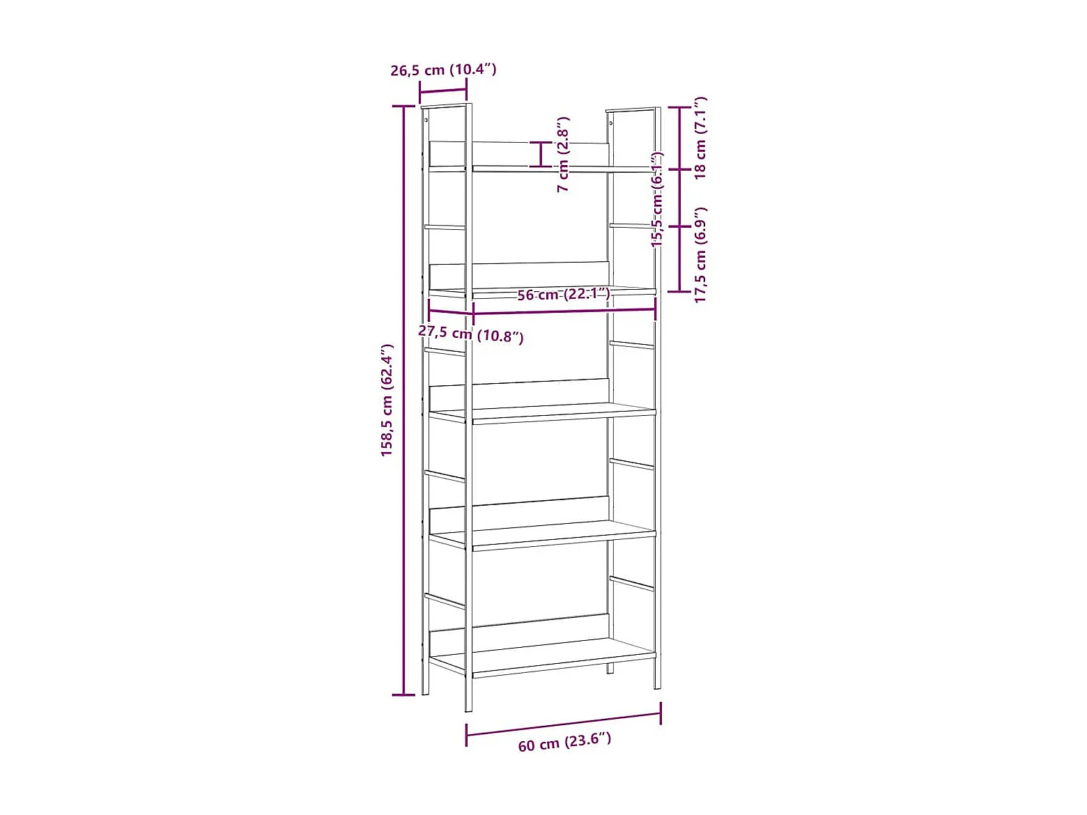 Bibliothèque à 5 niveaux chêne 60x27,6x158,5 cm bois ingénierie