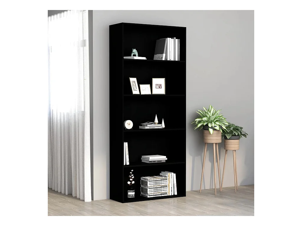 Bibliothèque à 5 niveaux Noir 80x30x189 cm Aggloméré
