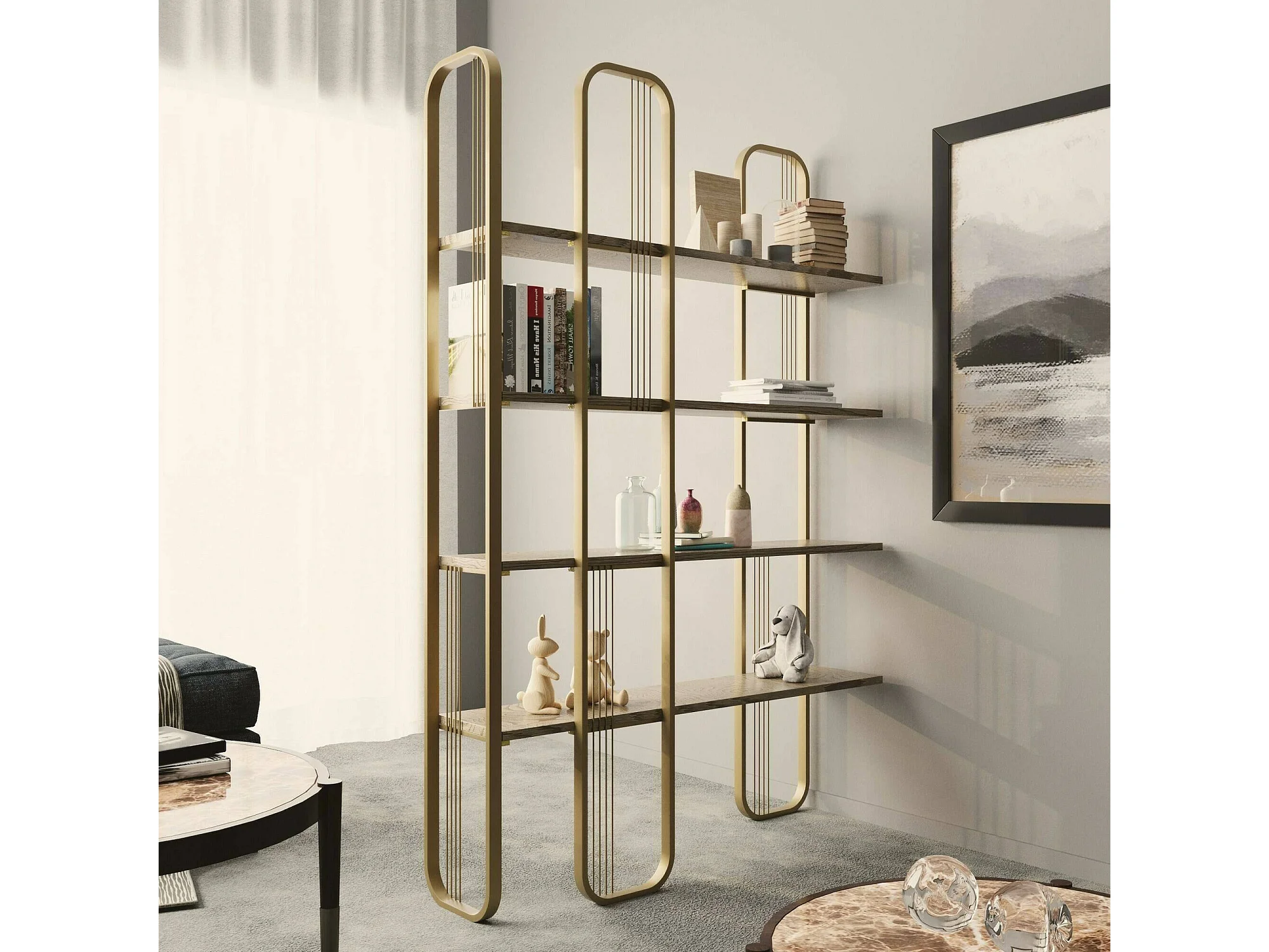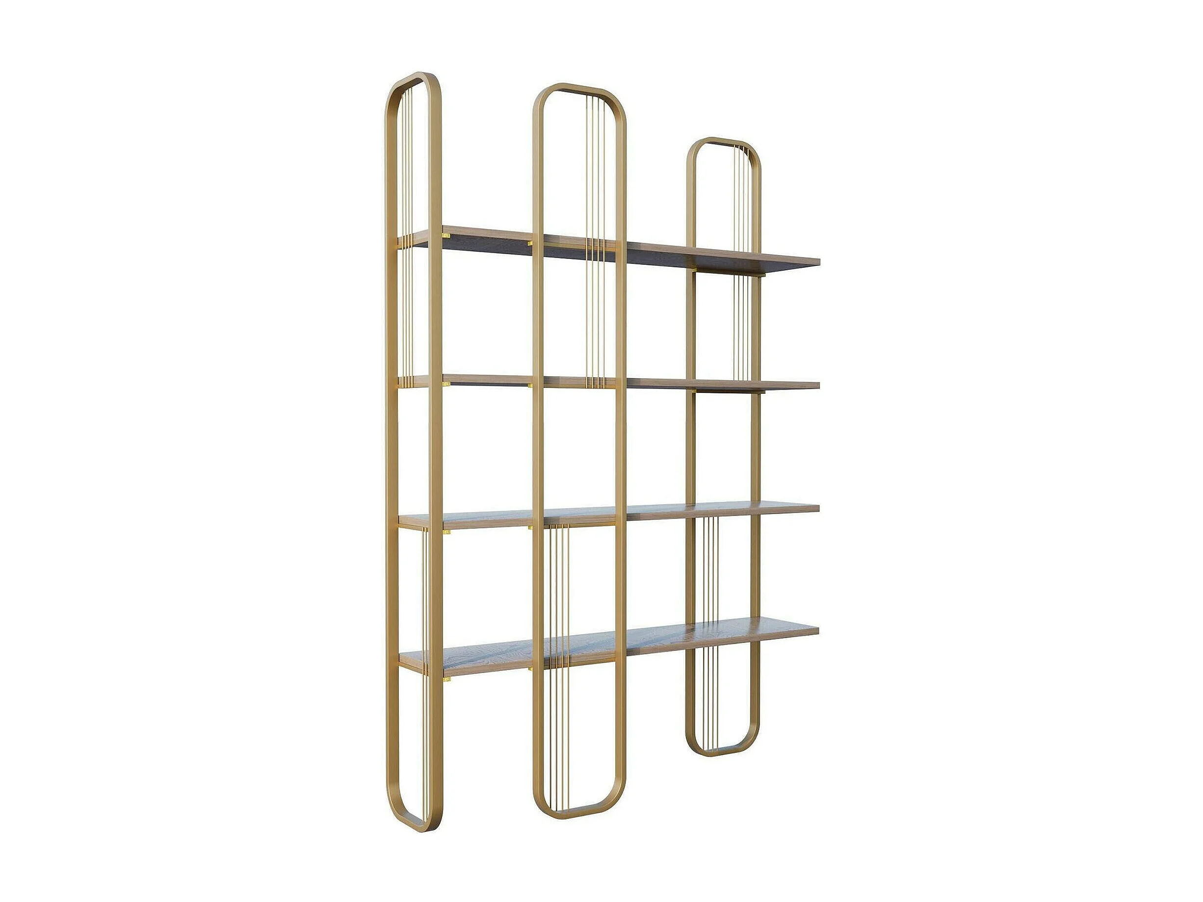 Bibliothèque Almena, Etagère de bureau, Porte-livre mobile, Librairie, 125x28h180 cm, Or