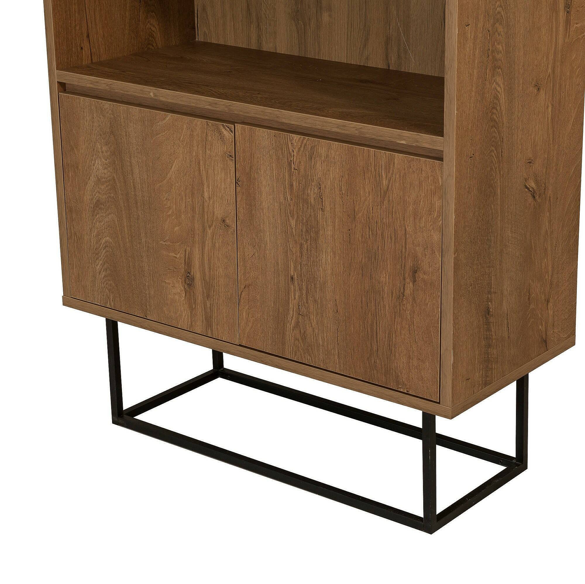 Bibliothèque Almeni, Etagère de bureau, Porte-livre mobile, Librairie, 80x36h182 cm, Noyer et Noir