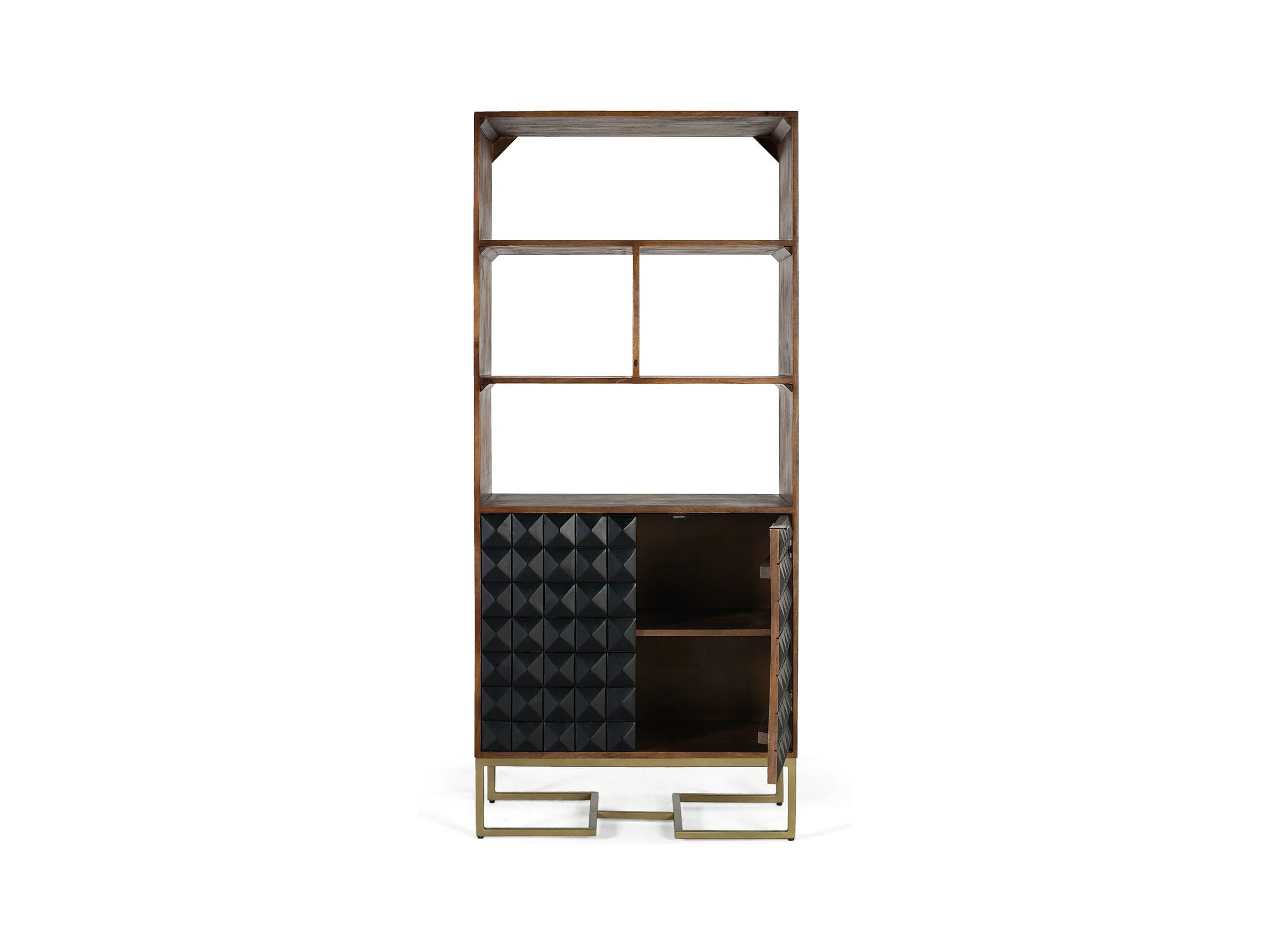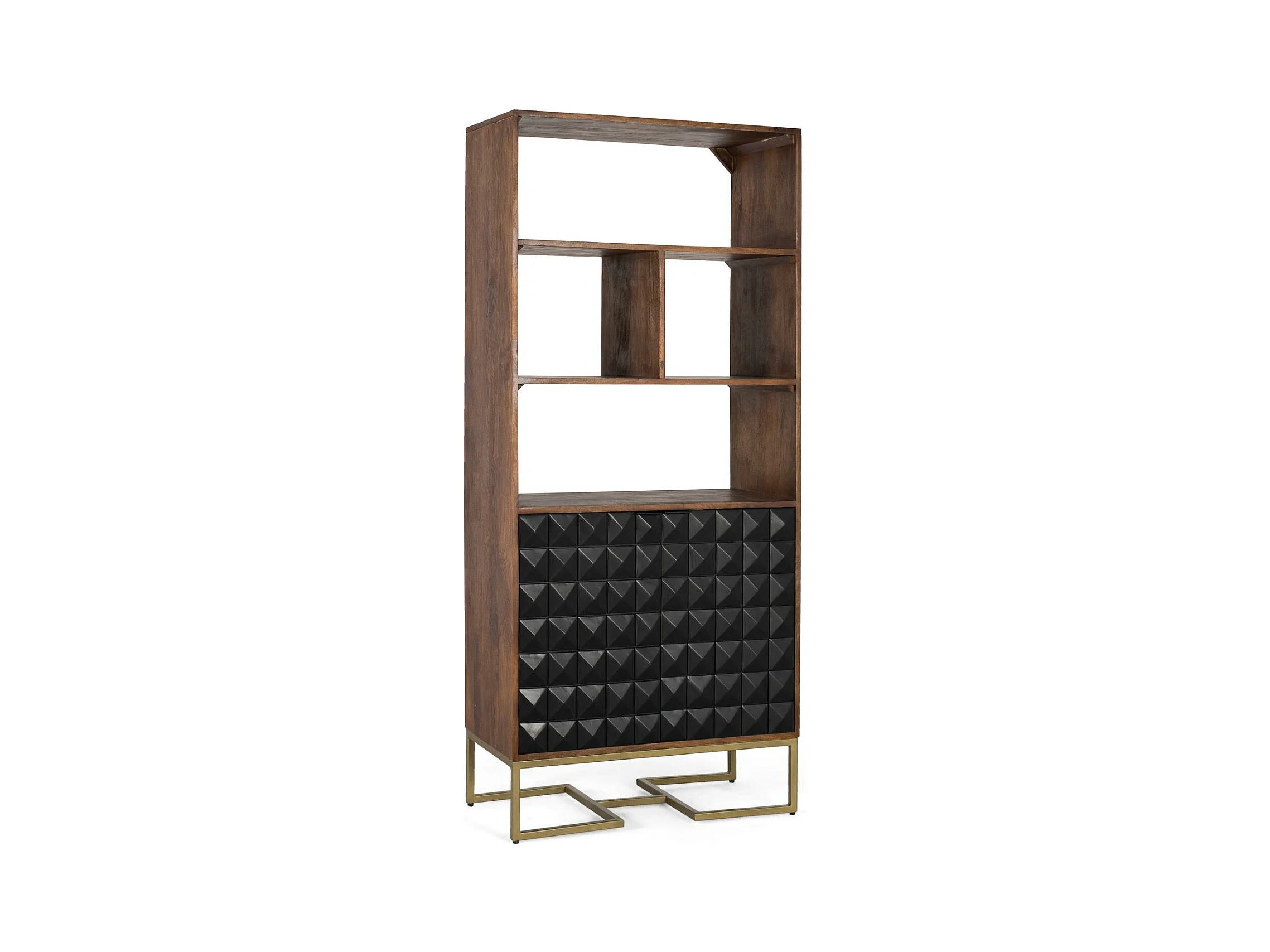 Bibliothèque artisanale en bois de manguier avec pieds dorés