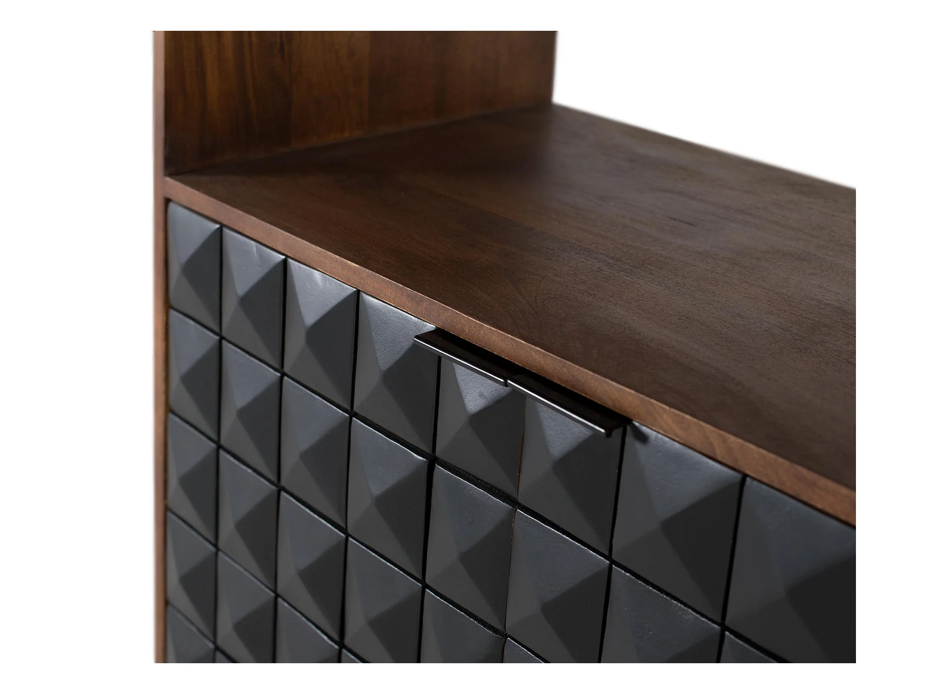 Bibliothèque en bois de manguier avec détails floraux peints à la main