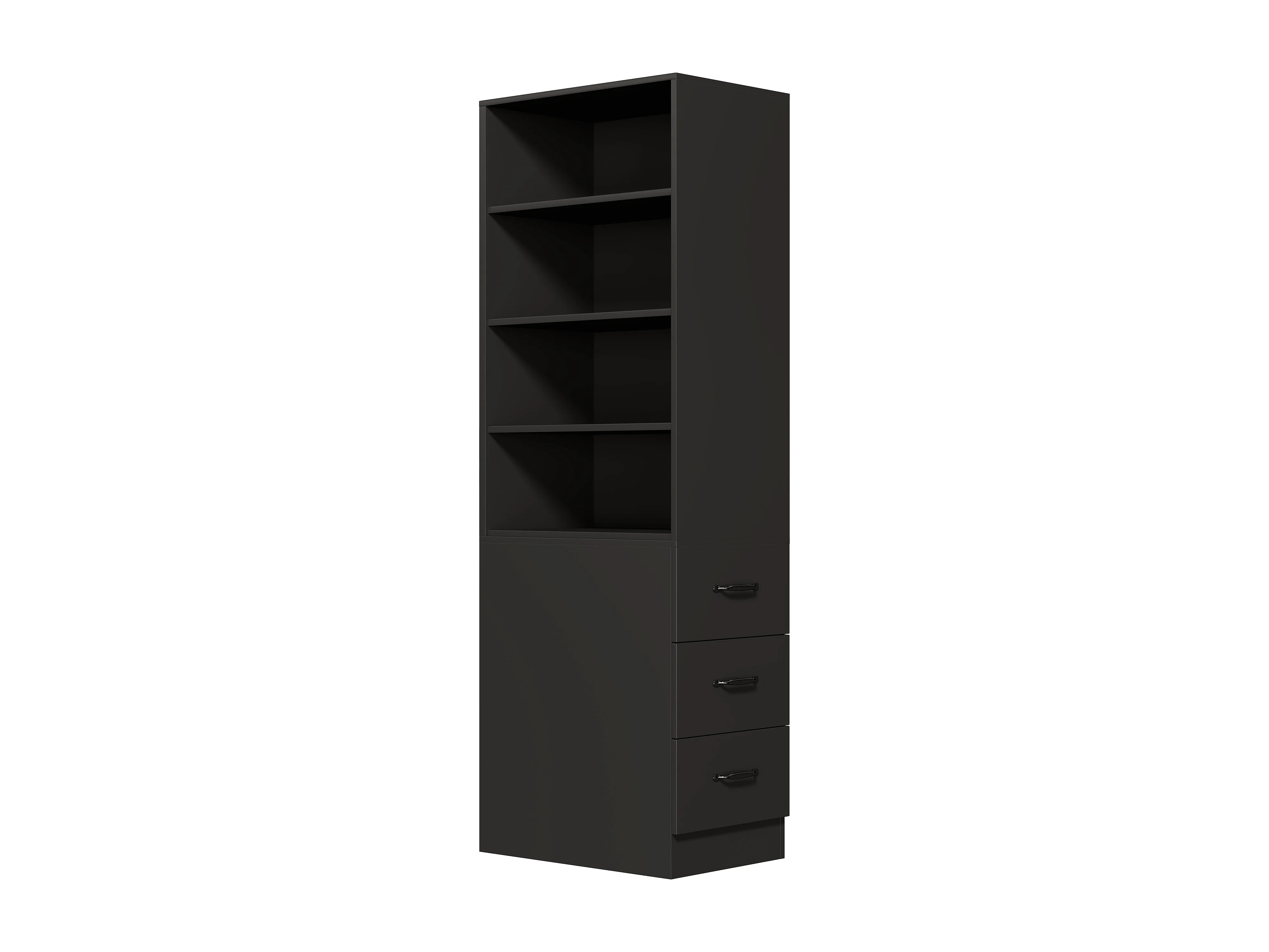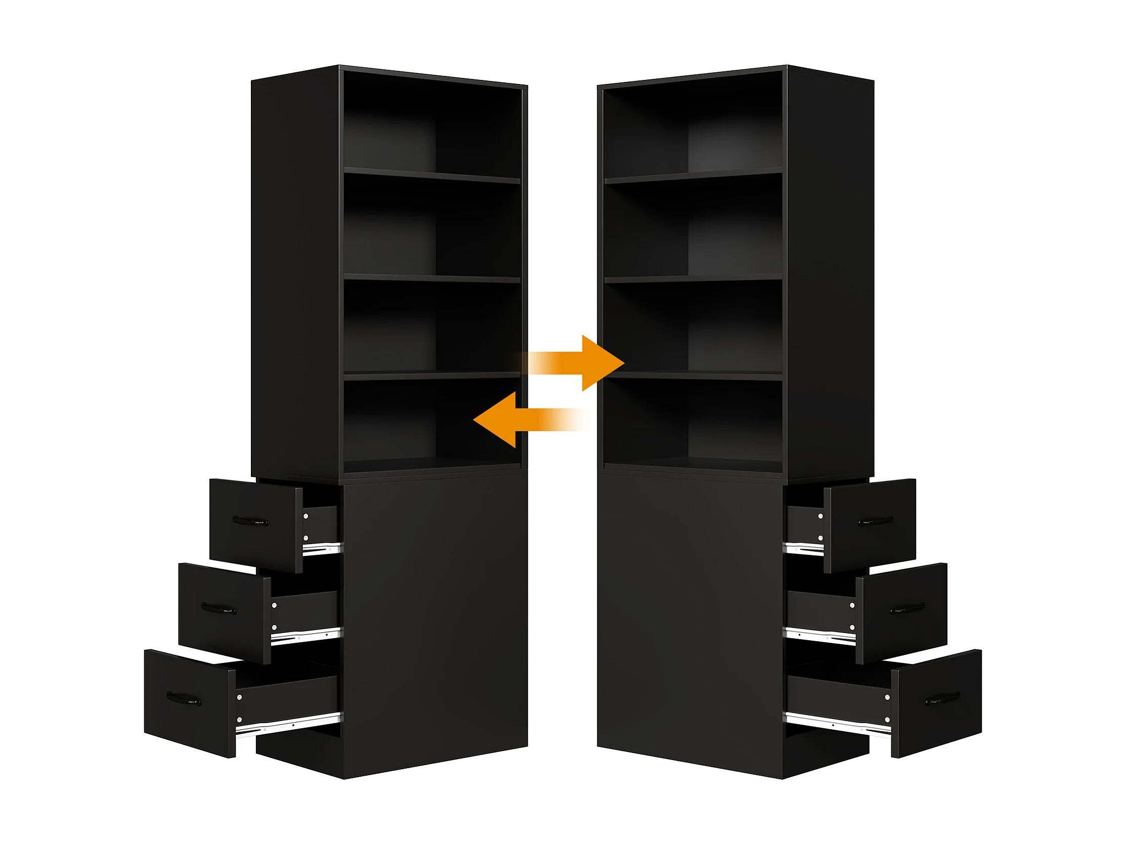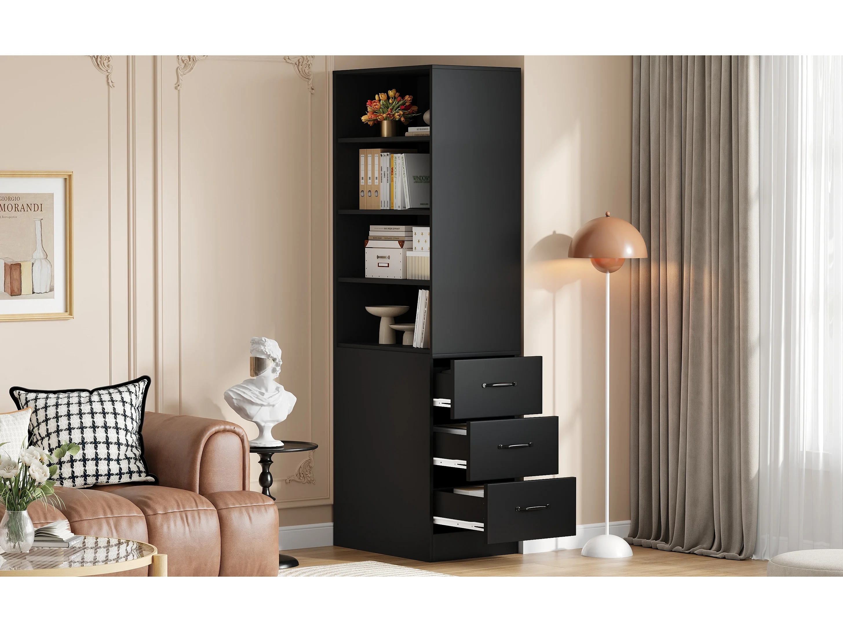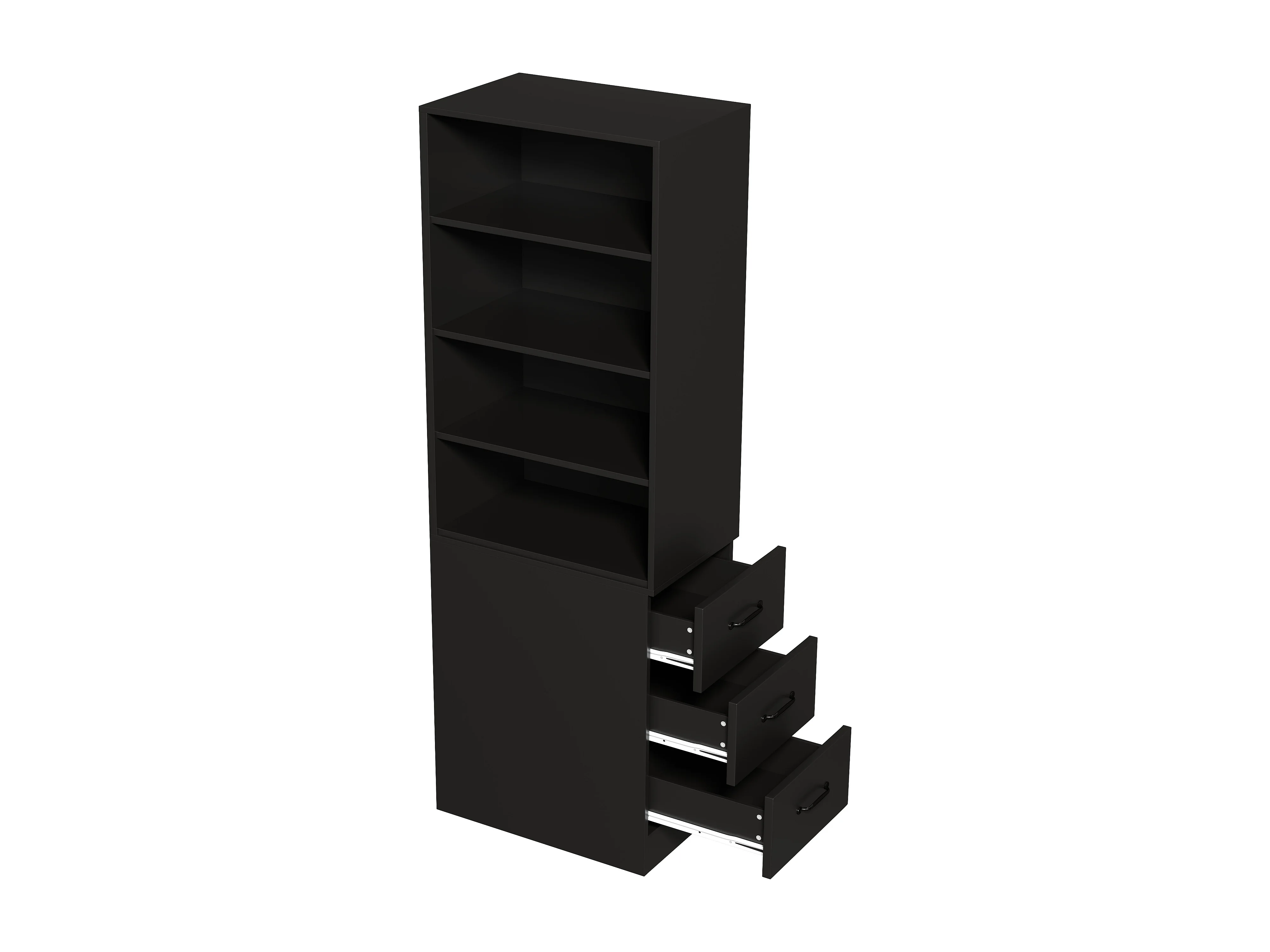 Bibliothèque avec 3 tiroirs latéraux et étagères - Noir 60x38x180 cm