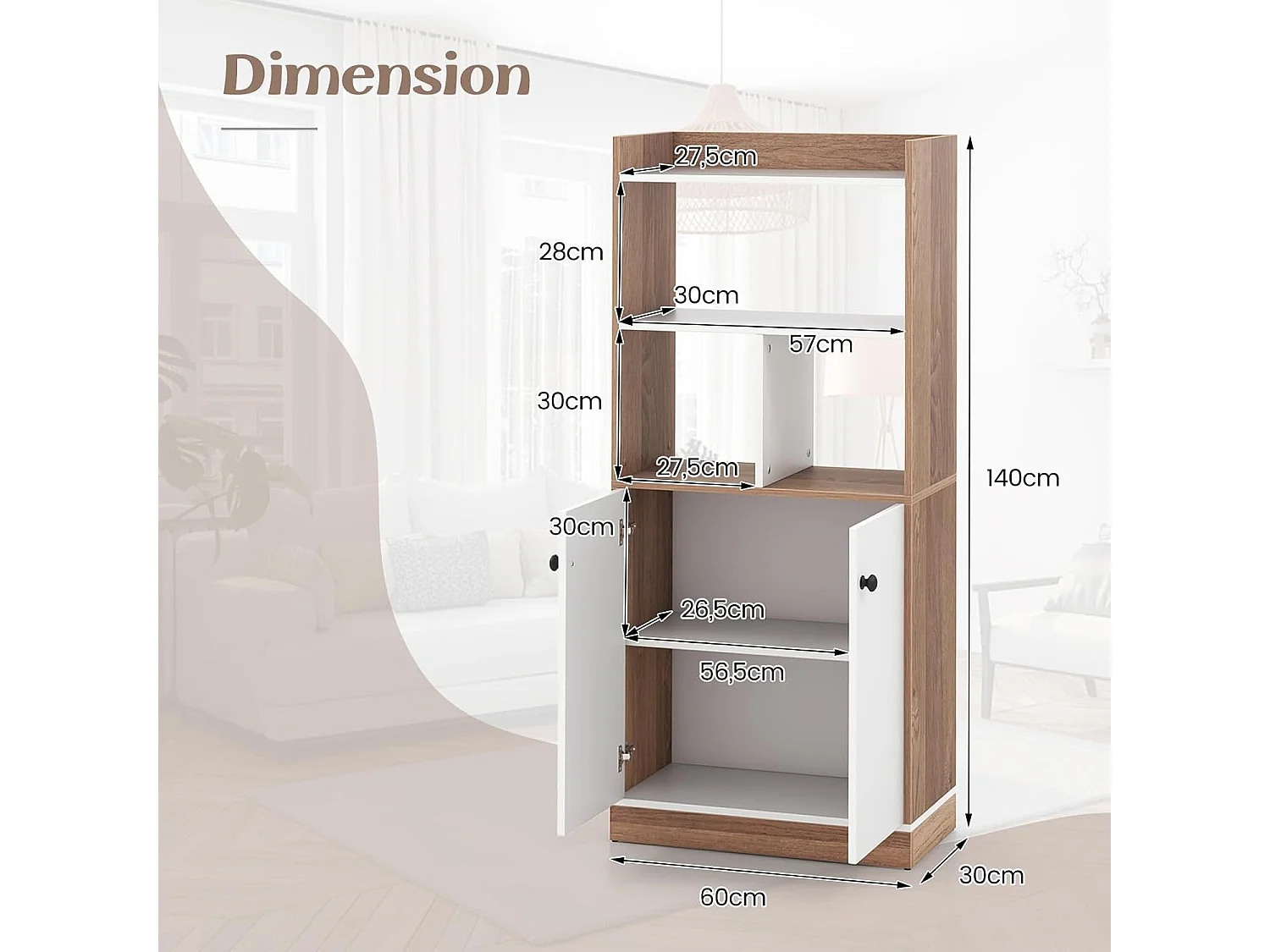Bibliothèque, avec étagère ouverte, dispositif anti-basculement, 60x30x140cm