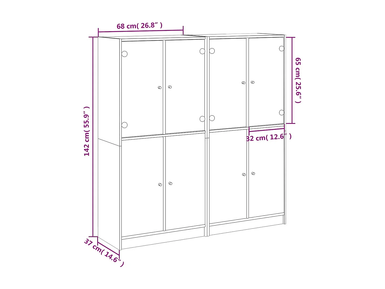 Bibliothèque avec portes chêne fumé 136x37x142 cm