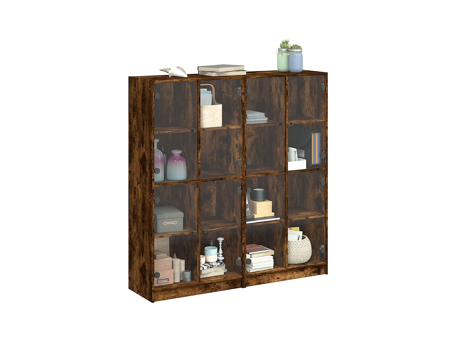 Bibliothèque avec portes chêne fumé 136x37x142 cm FR15343