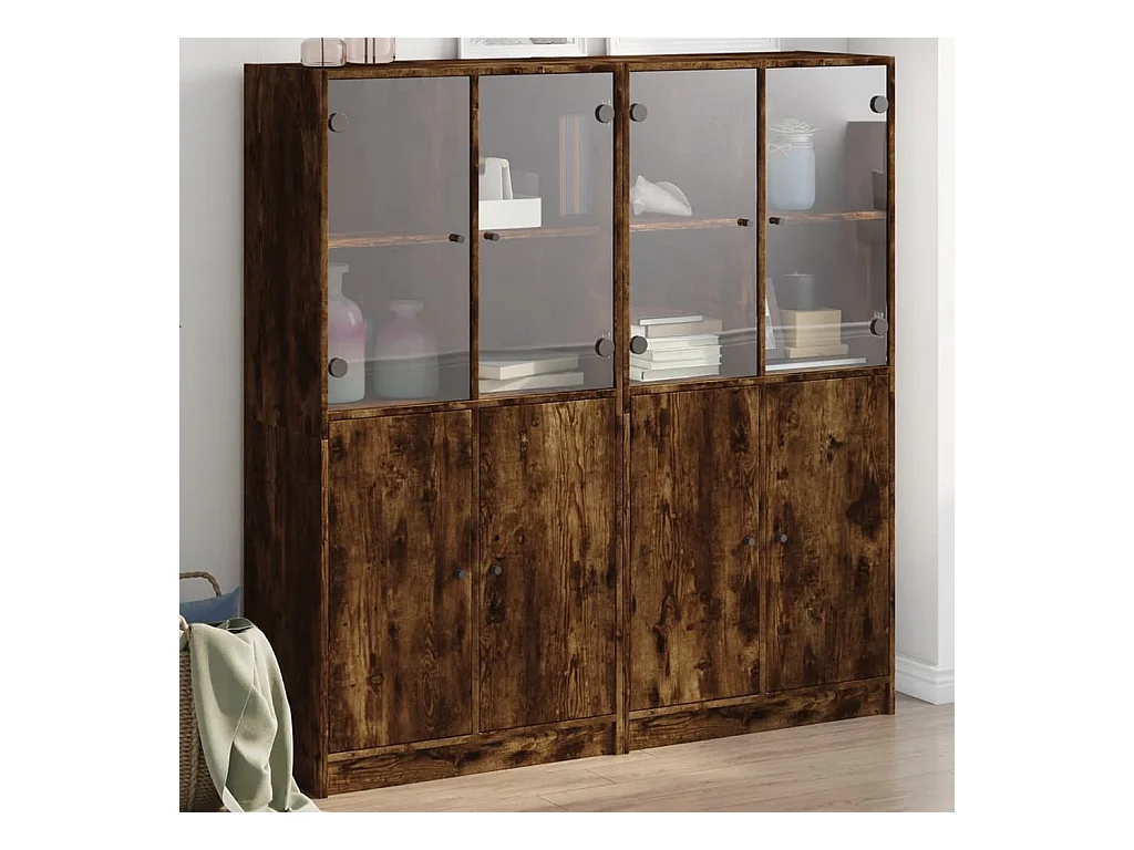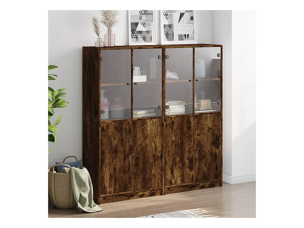 Bibliothèque avec portes chêne fumé 136x37x142 cm FR81467