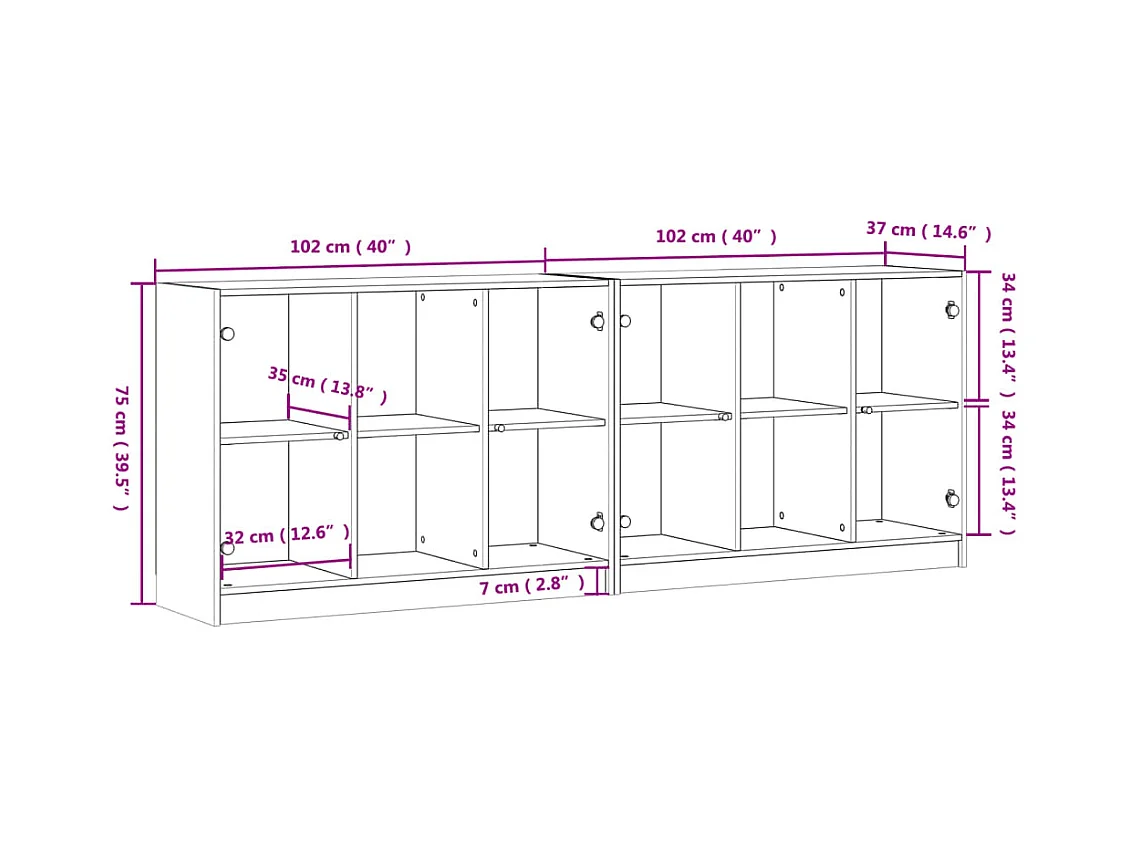 Bibliothèque avec portes sonoma gris 204x37x75 cm