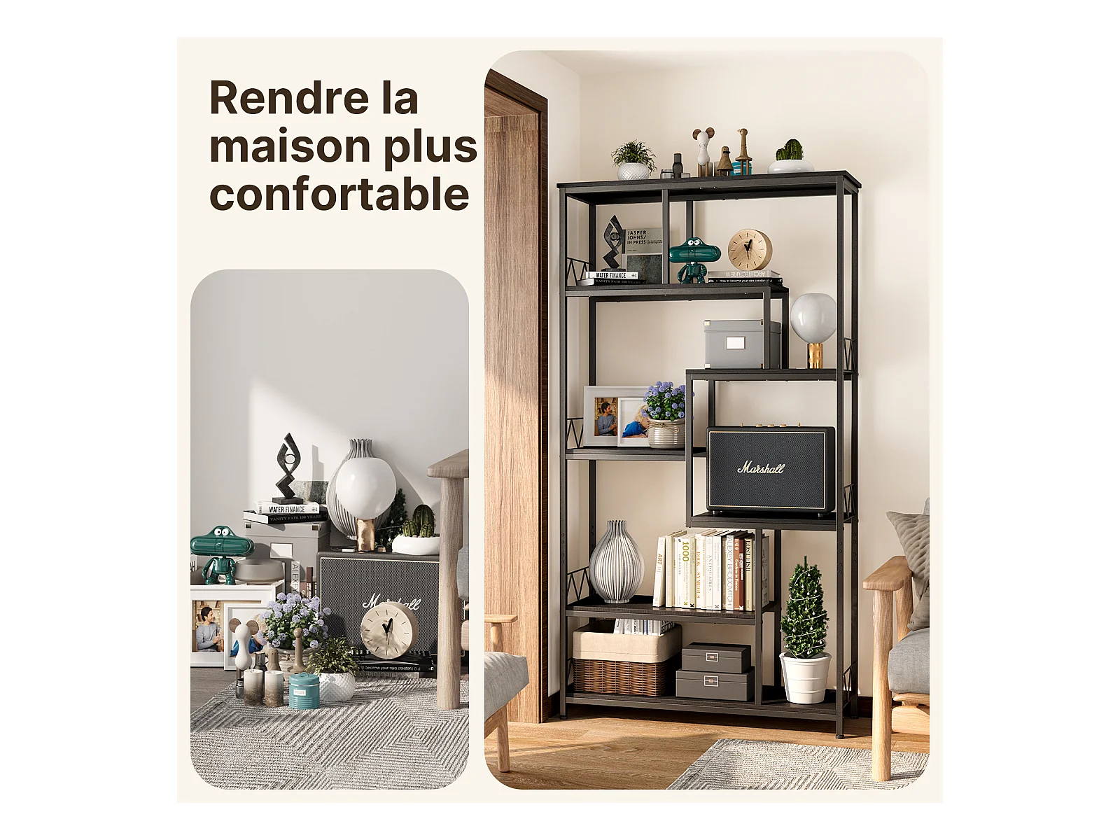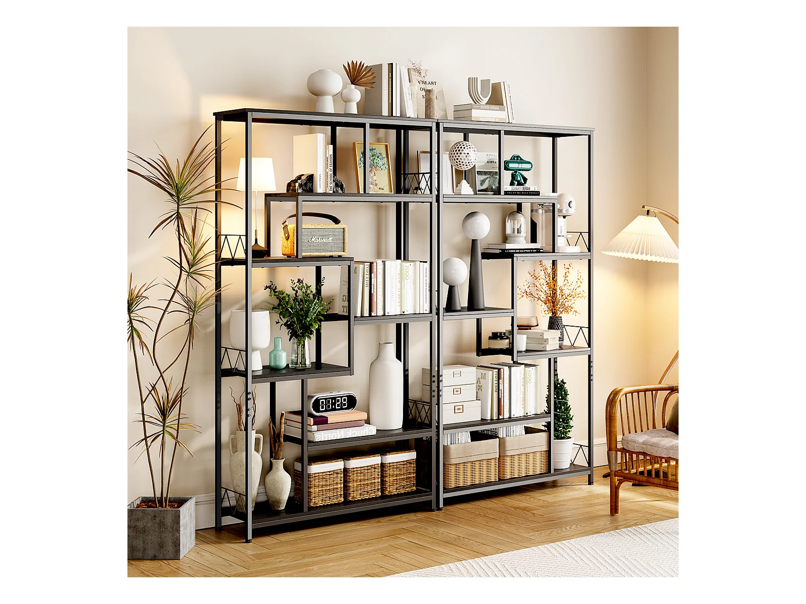 Bibliothèque géométrique, étagères industrielles à 8 Niveaux, bibliothèque Rustique avec Cadre en méta (Noir, 1)