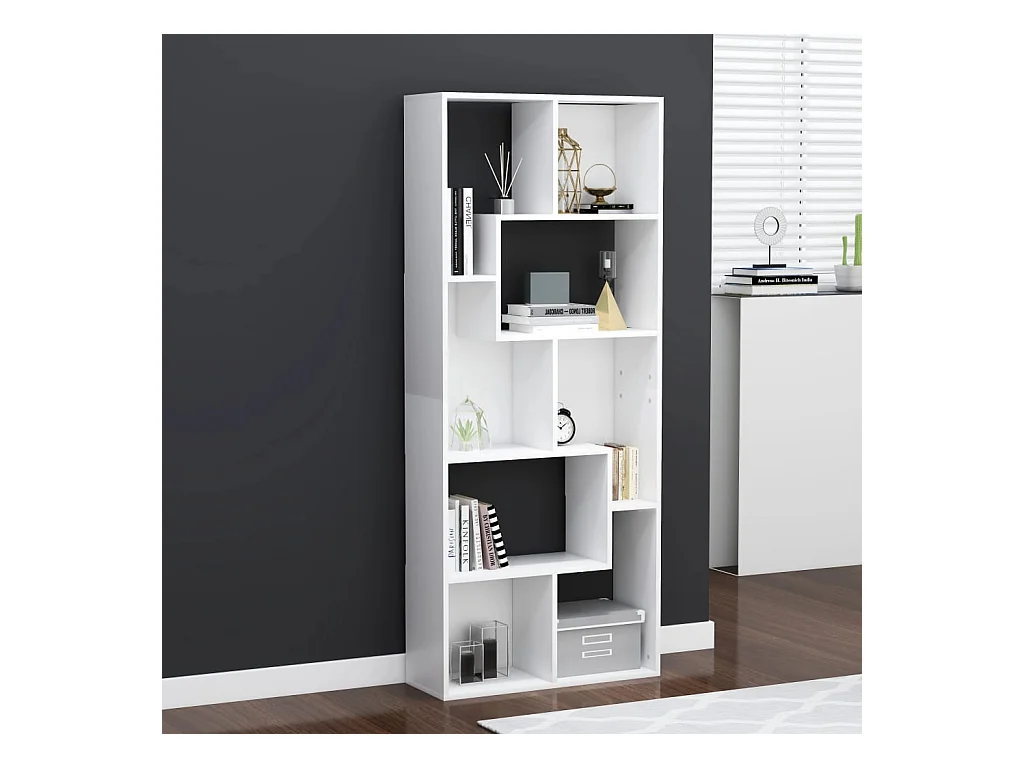 Bibliothèque séparateur de pièce blanc brillant bois ingénierie OFR88390 BonneVie Meuble