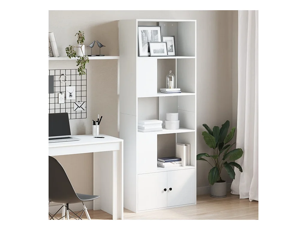 Bibliothèque séparateur de pièce blanc brillant bois ingénierie