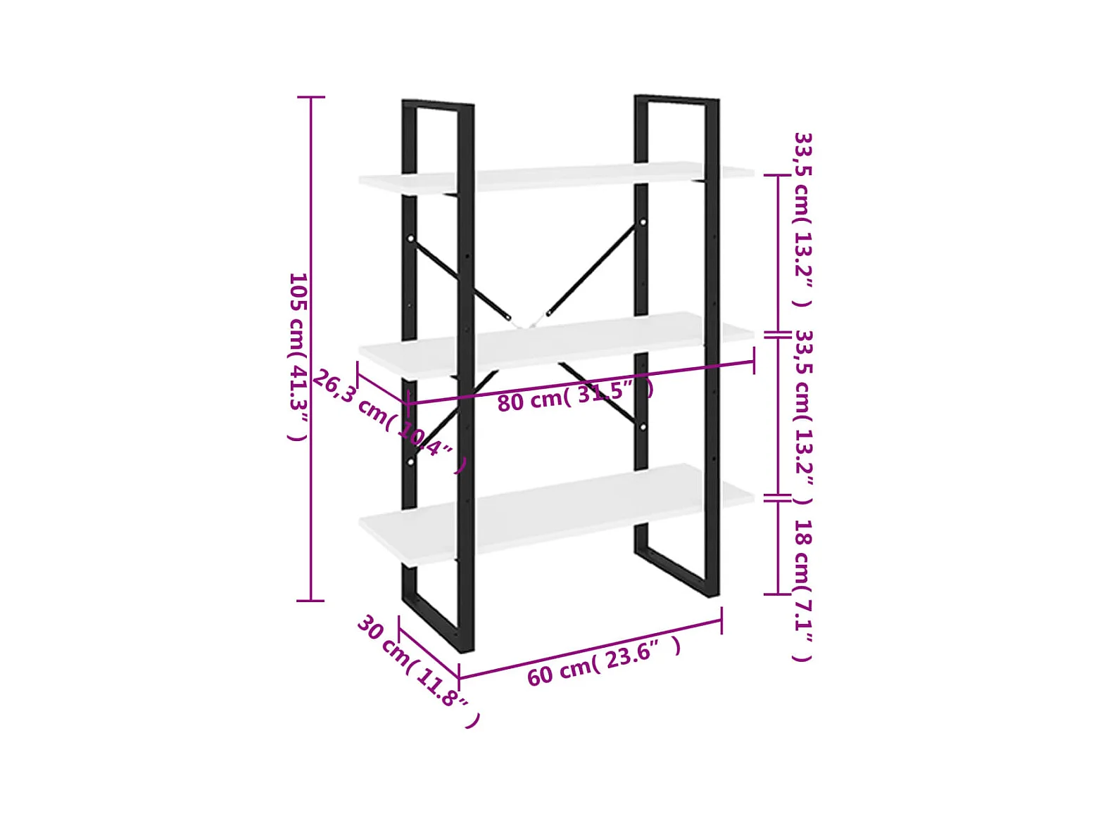 Bibliothèque à 3 niveaux Blanc 40x30x105 cm Aggloméré
