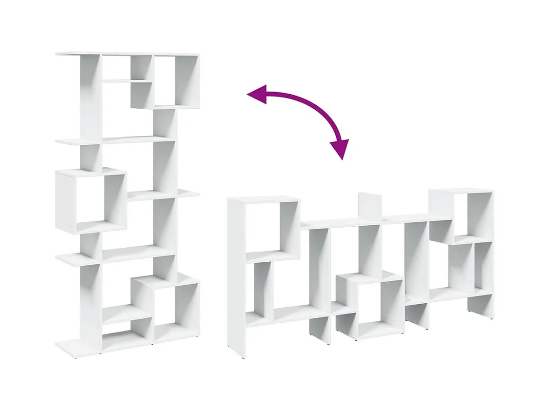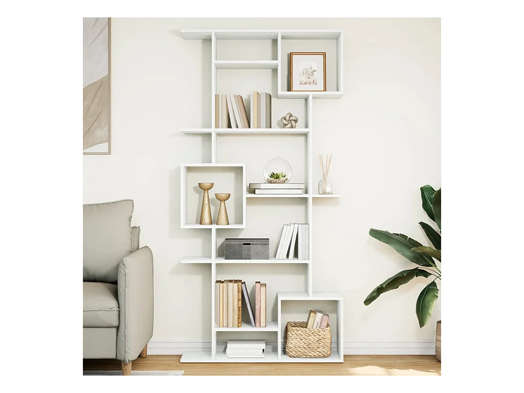Bibliothèque séparatrice de pièce à 3 niveaux blanc 123x29x123 cm