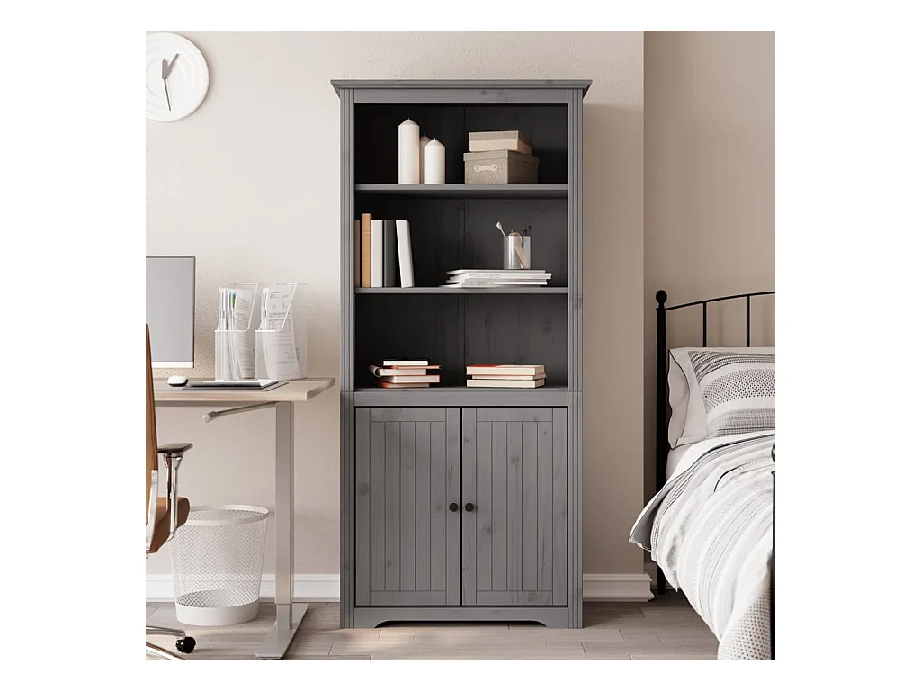 Bibliothèque BODO gris 82x40x173 cm bois de pin massif