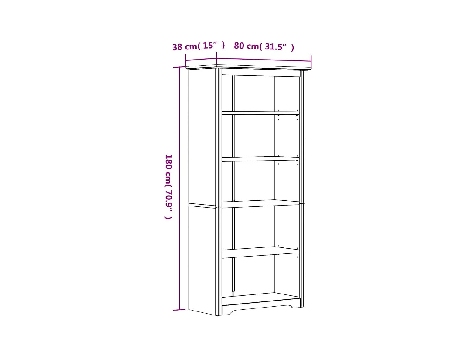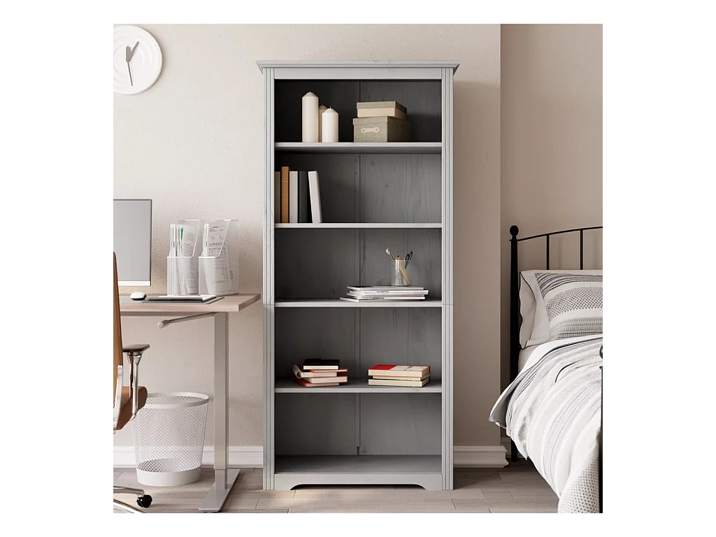 Bibliothèque BODO gris 82x40x173 cm bois pin massif 5 niveaux