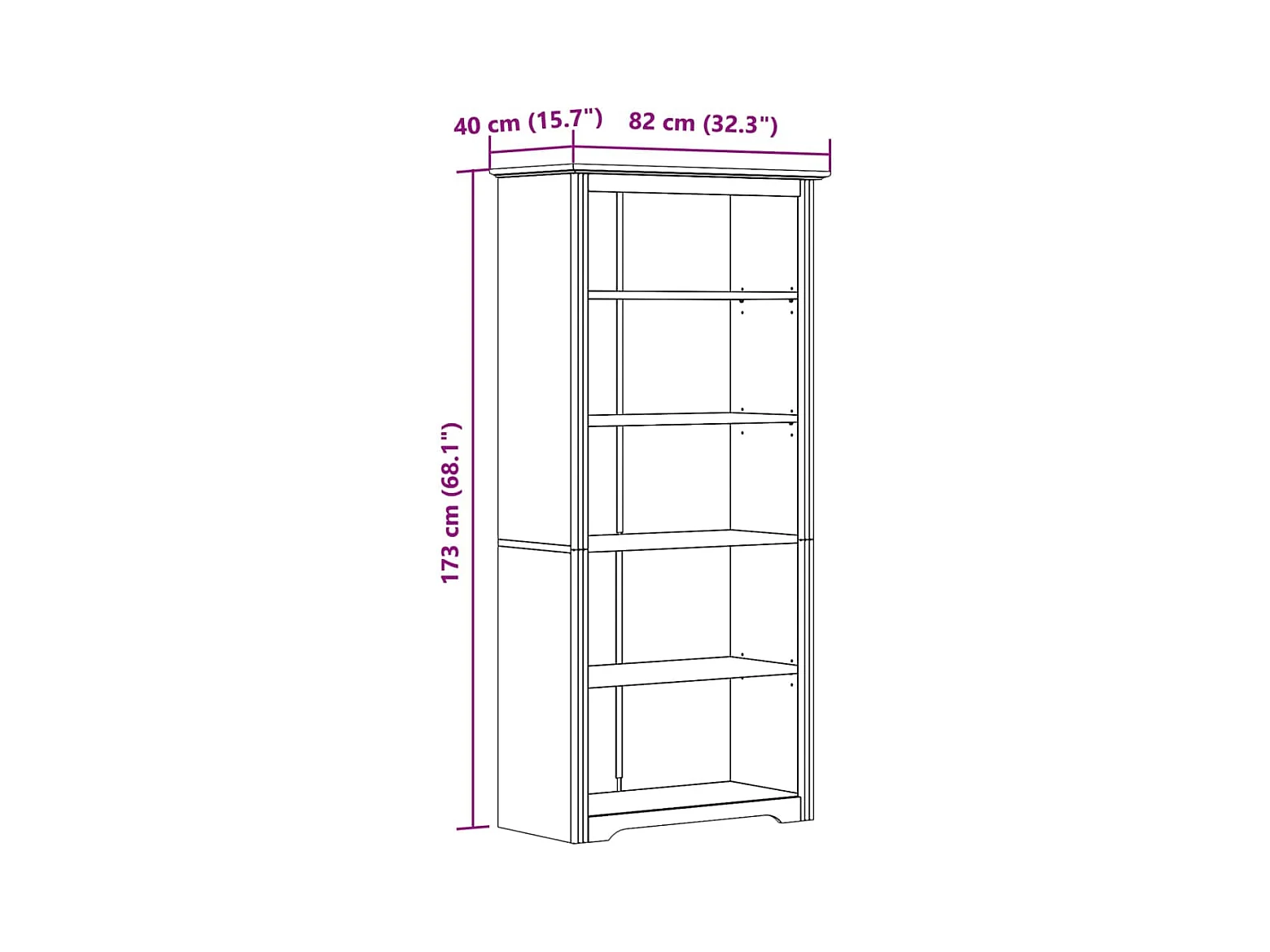 Bibliothèque BODO gris 82x40x173 cm bois pin massif 5 niveaux