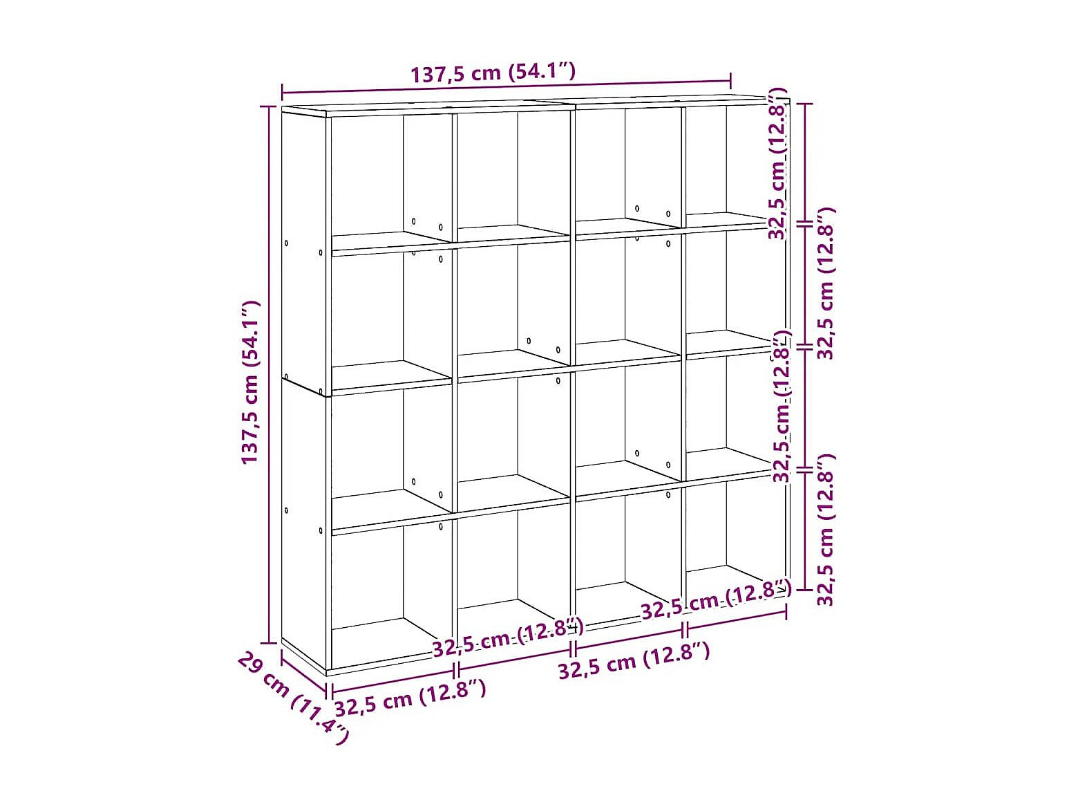 Bibliothèque séparatrice de pièce chêne fumé 102x29x103,5 cm