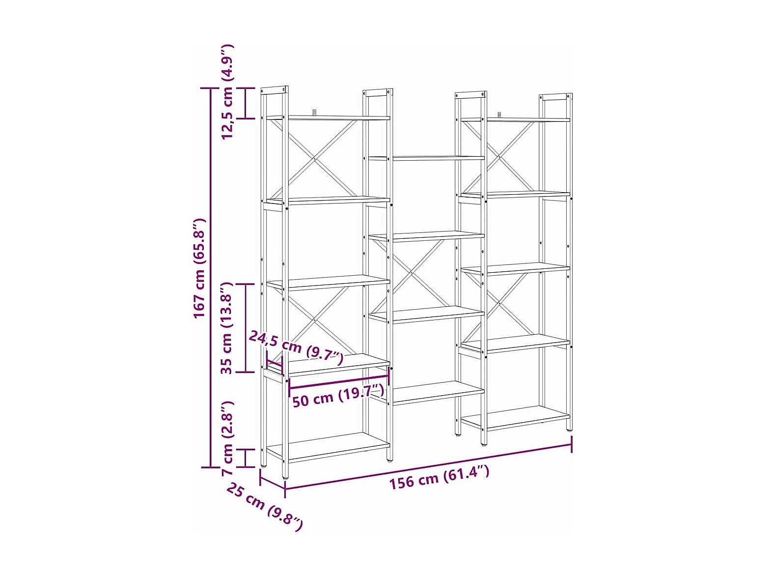 Bibliothèque Chêne fumé 156 x 25 x 167.5 cm Bois d'ingénierie