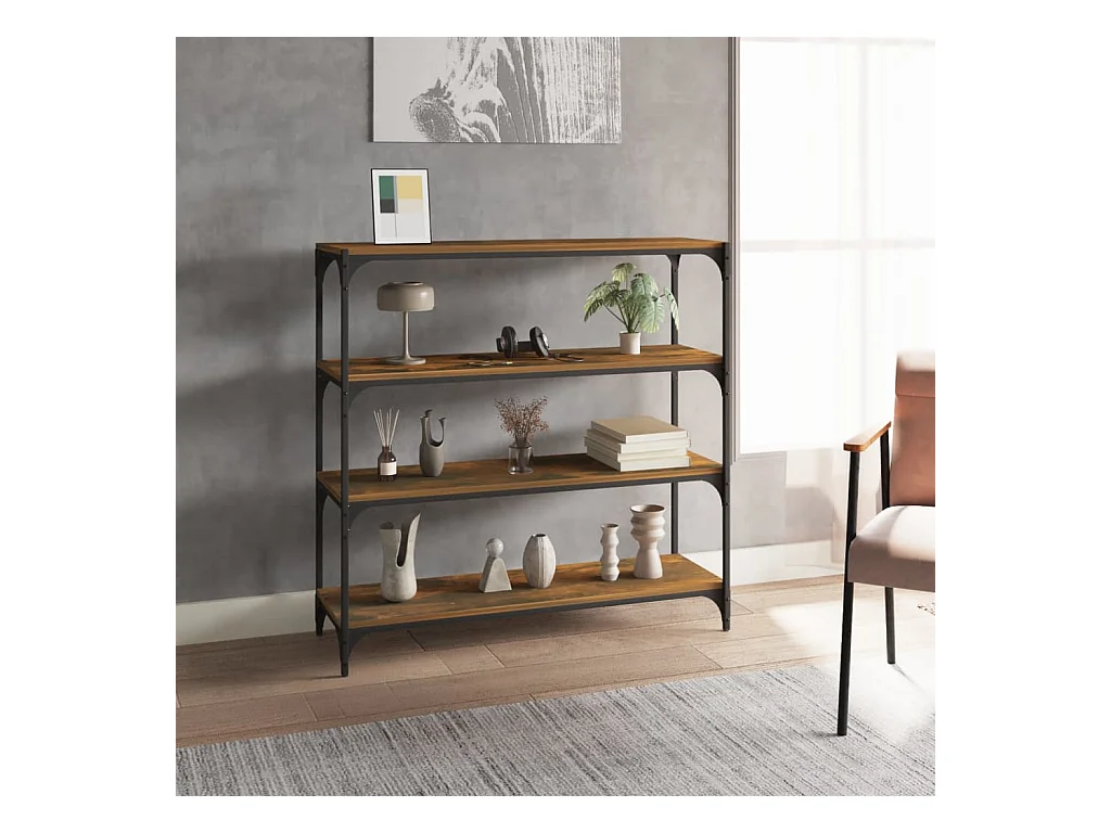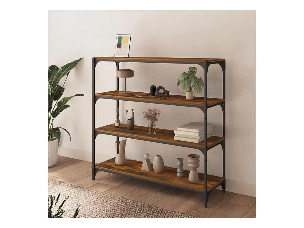 Bibliothèque Chêne fumé 100x33x100cm Bois d'ingénierie et acier