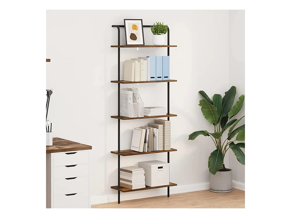 Bibliothèque échelle style loft rustique marron Valora avec 6 étagères | vintage
