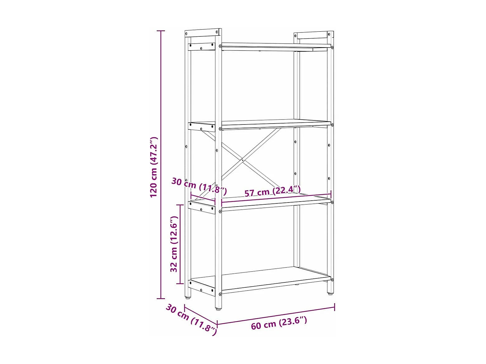 Bibliothèque 3 niveaux chêne fumé 60x30x60 cm bois d'ingénierie