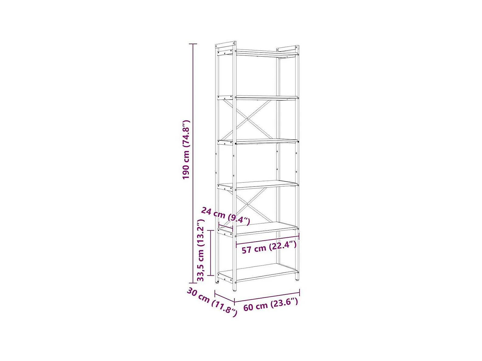 Bibliothèque Chêne fumé 60 x 30 x 188 cm MDF et acier