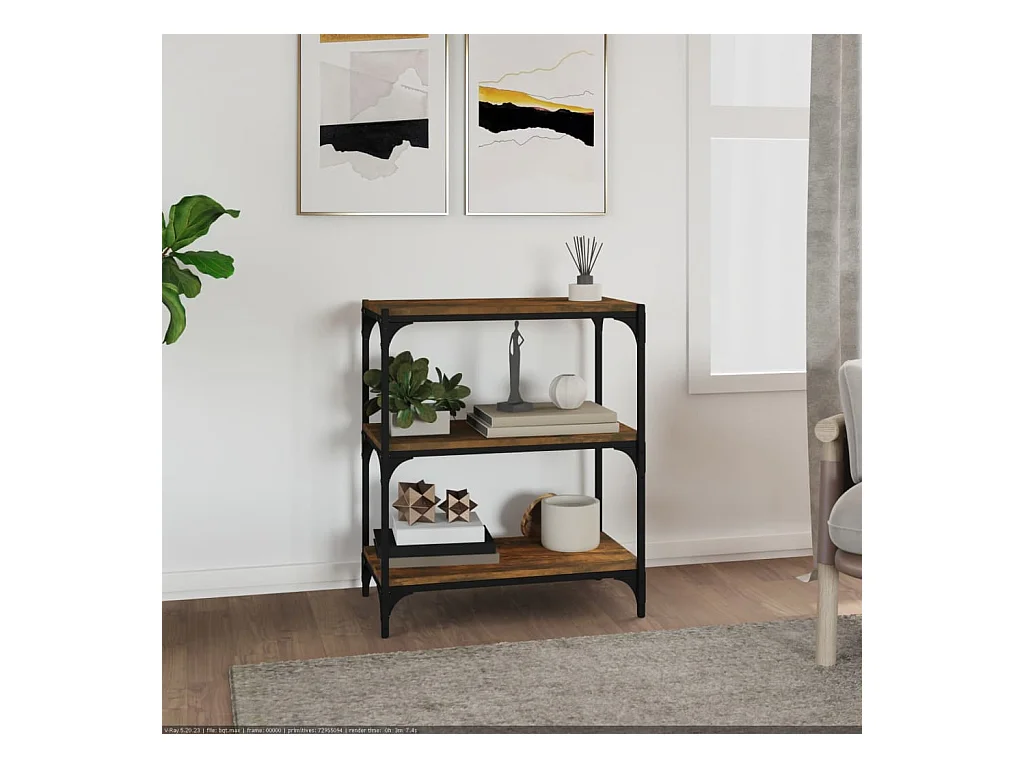 Bibliothèque Chêne fumé 60x33x70,5cm Bois d'ingénierie et acier