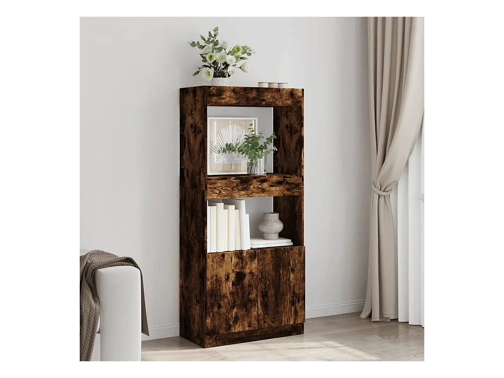 Bibliothèque chêne fumé 63x33x140 cm bois d'ingénierie