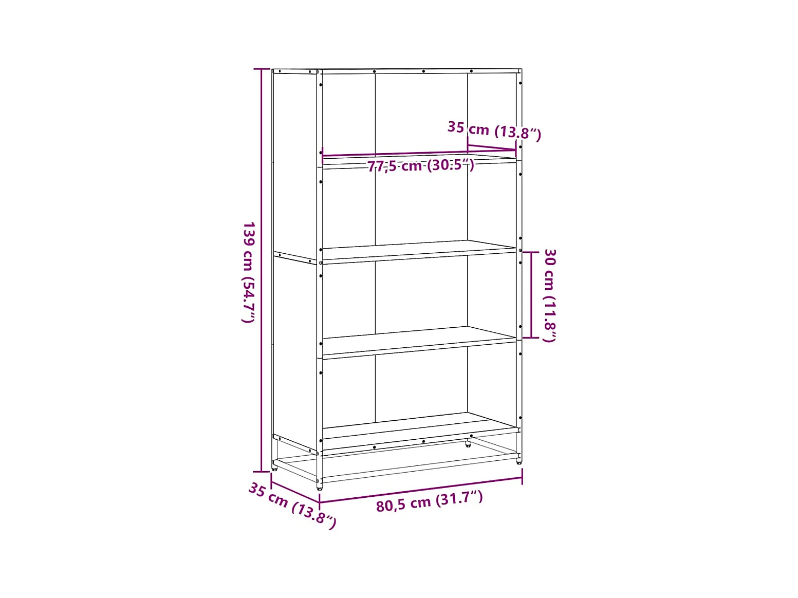 Bibliothèque chêne fumé 80,5x35x139 cm bois d'ingénierie