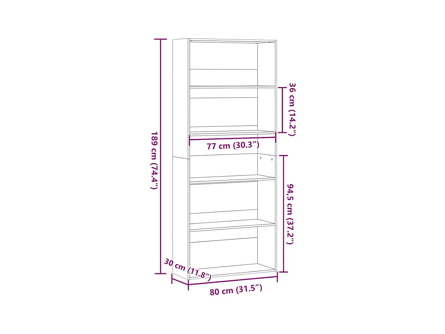 Bibliothèque chêne fumé 80x30x189 cm bois d'ingénierie
