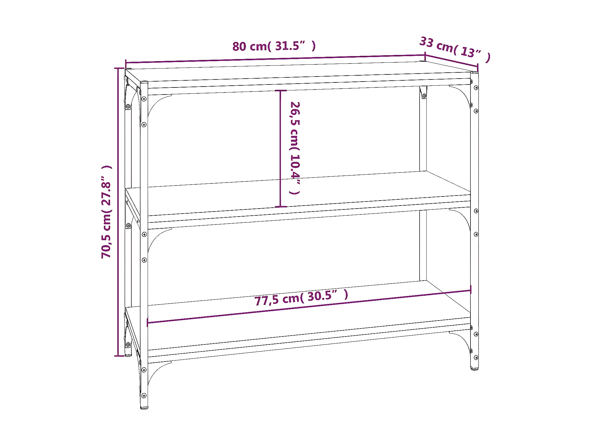 Bibliothèque Chêne fumé 80x33x70,5cm Bois d'ingénierie et acier