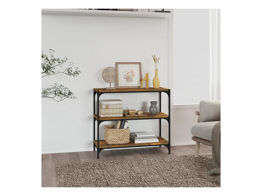 Bibliothèque Chêne fumé 80x33x70,5cm Bois d'ingénierie et acier