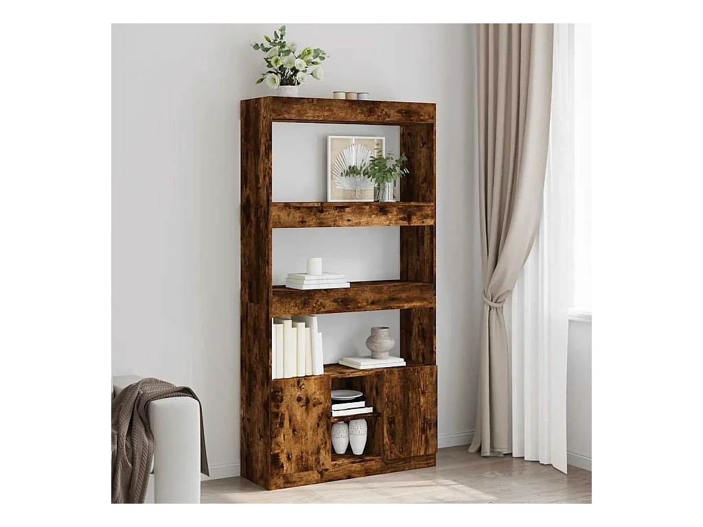 Bibliothèque chêne fumé 92x33x140 cm bois d'ingénierie