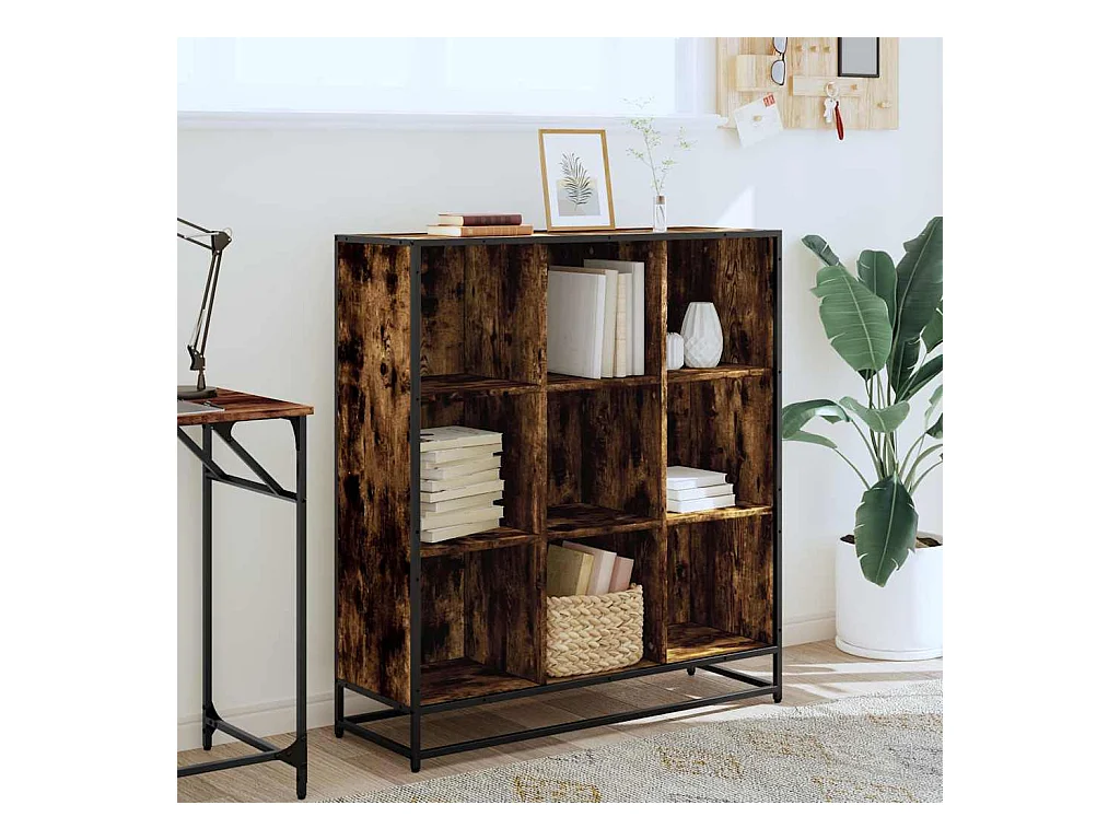 Bibliothèque chêne fumé 97,5x33x107,5cm bois d'ingénierie métal