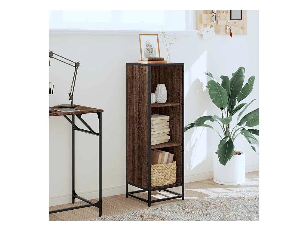 Bibliothèque chêne marron 97,5x33x107,5cm bois ingénierie métal
