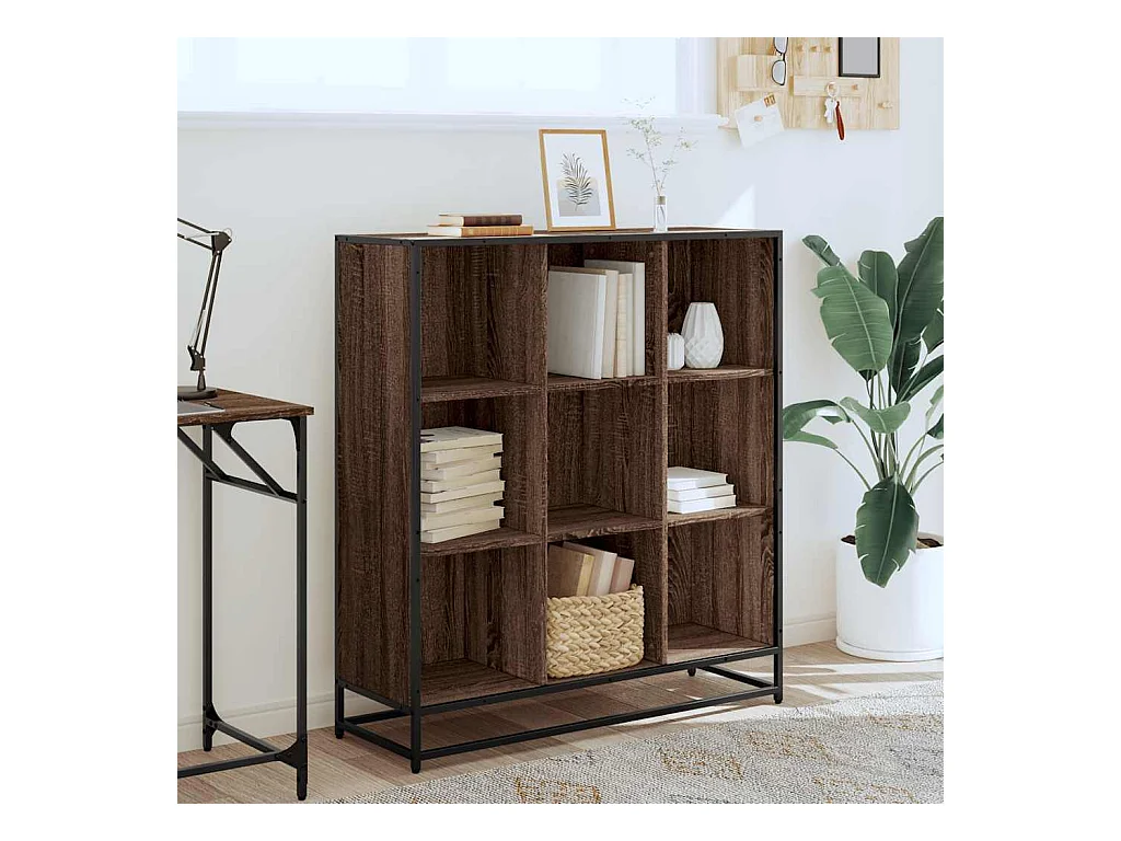 Bibliothèque chêne marron 97,5x33x107,5cm bois ingénierie métal