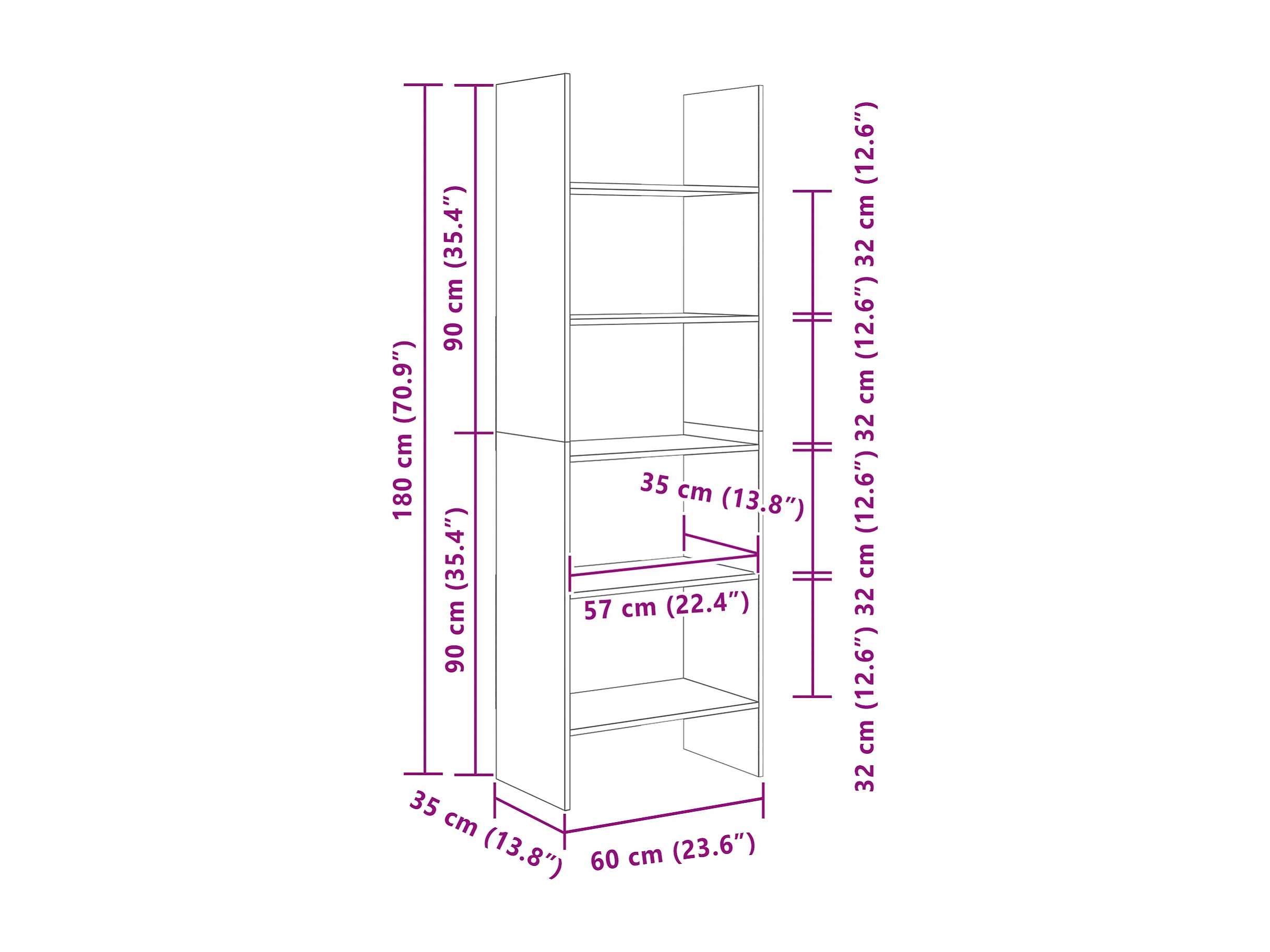 Bibliothèque Noir 60x35x180 cm Bois d’ingénierie