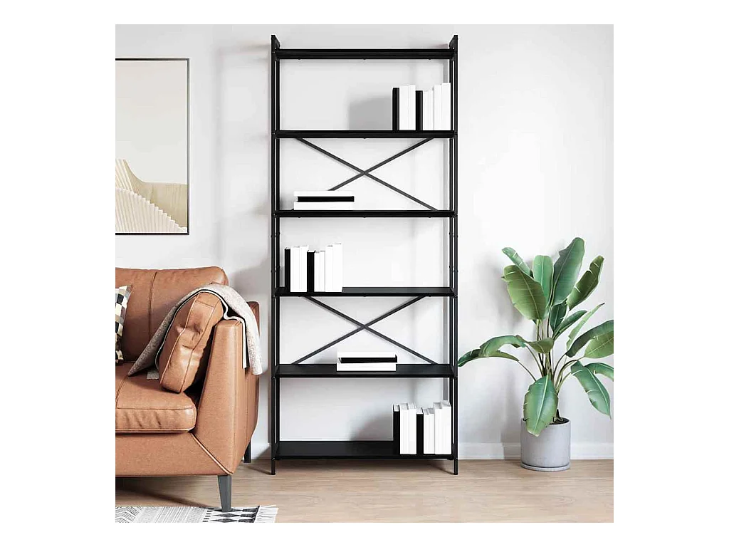 Bibliothèque 6 niveaux noir 80x30x188 cm bois d'ingénierie