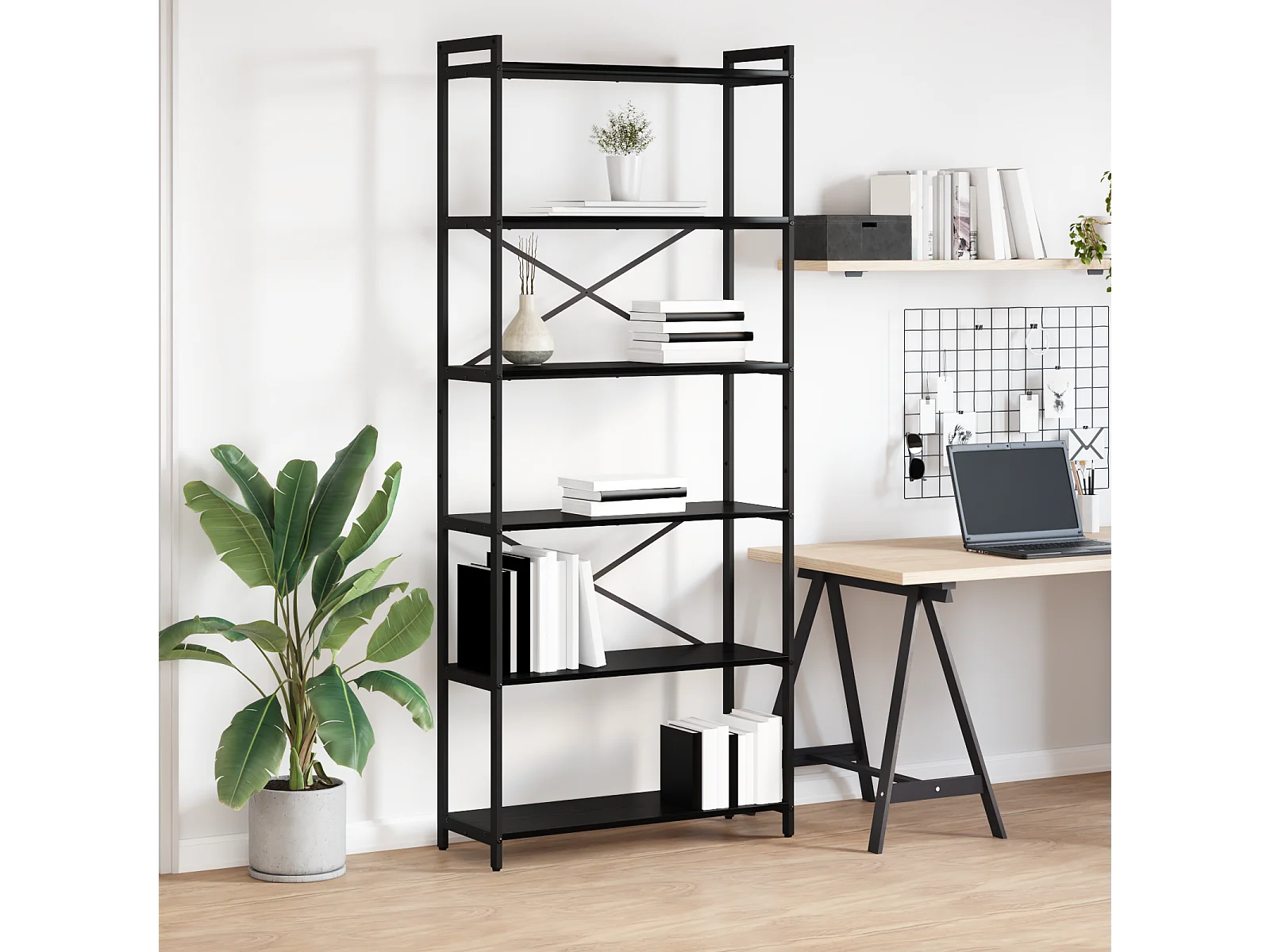 Bibliothèque Chêne noir 80 x 30 x 188 cm Bois et Acier